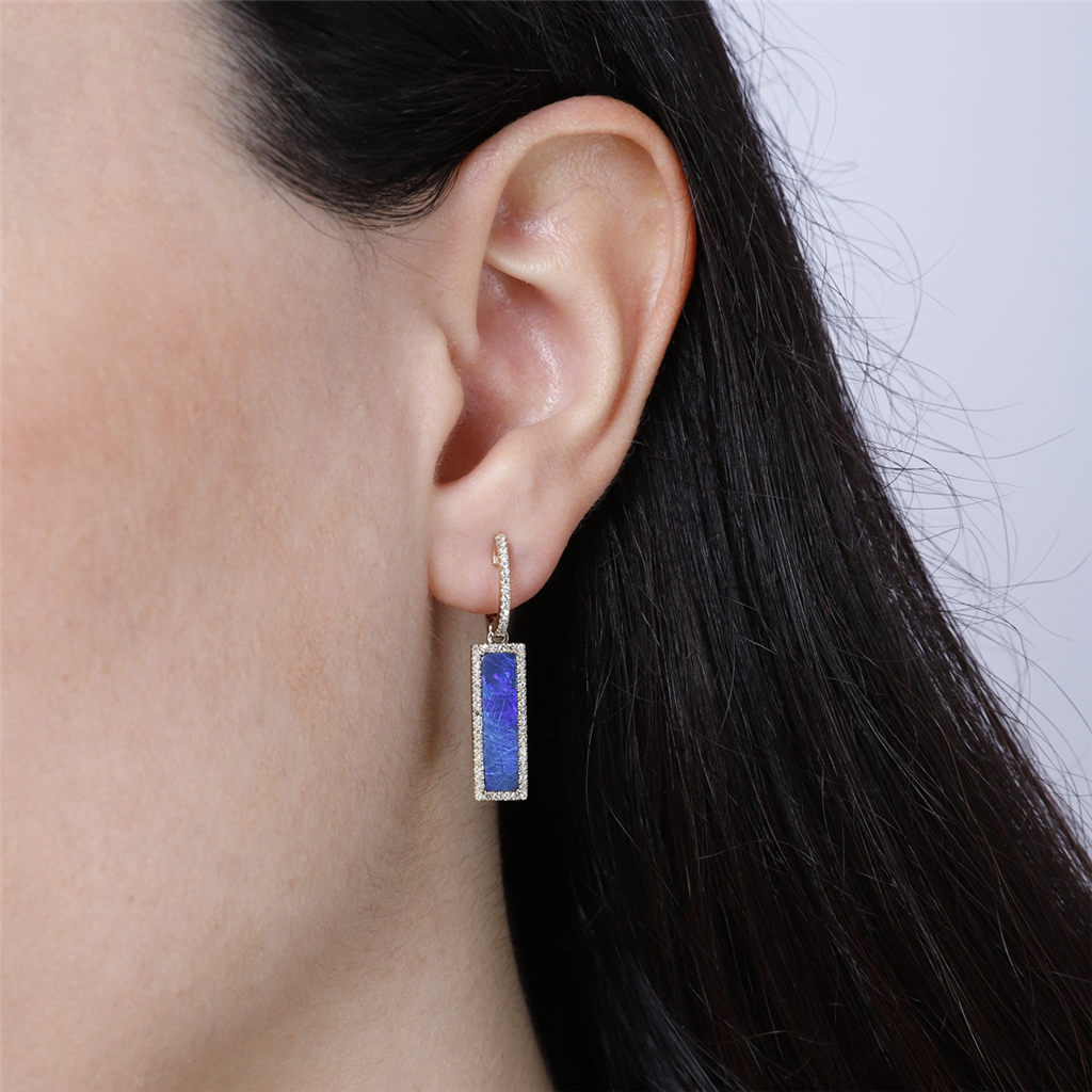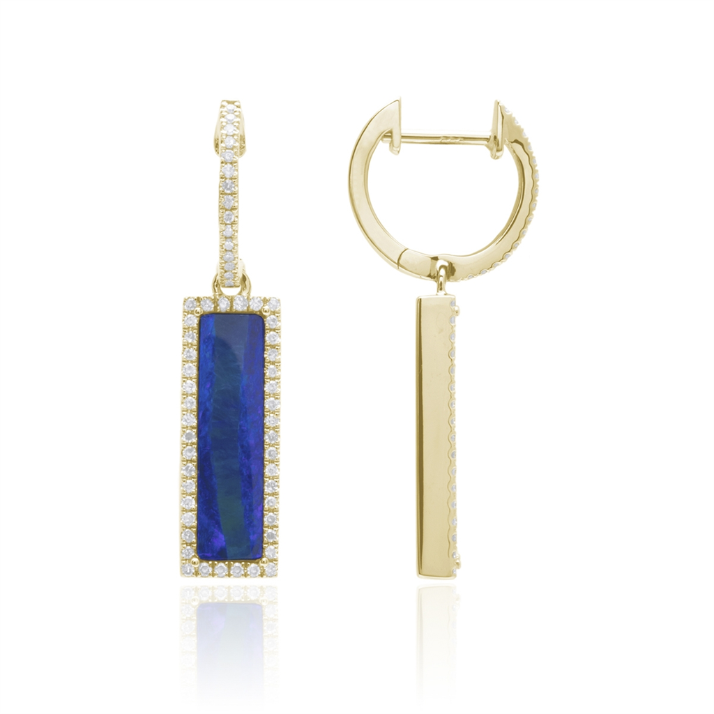 14K Yellow Gold Opal And Diamond Rectangular Dangle Earrings