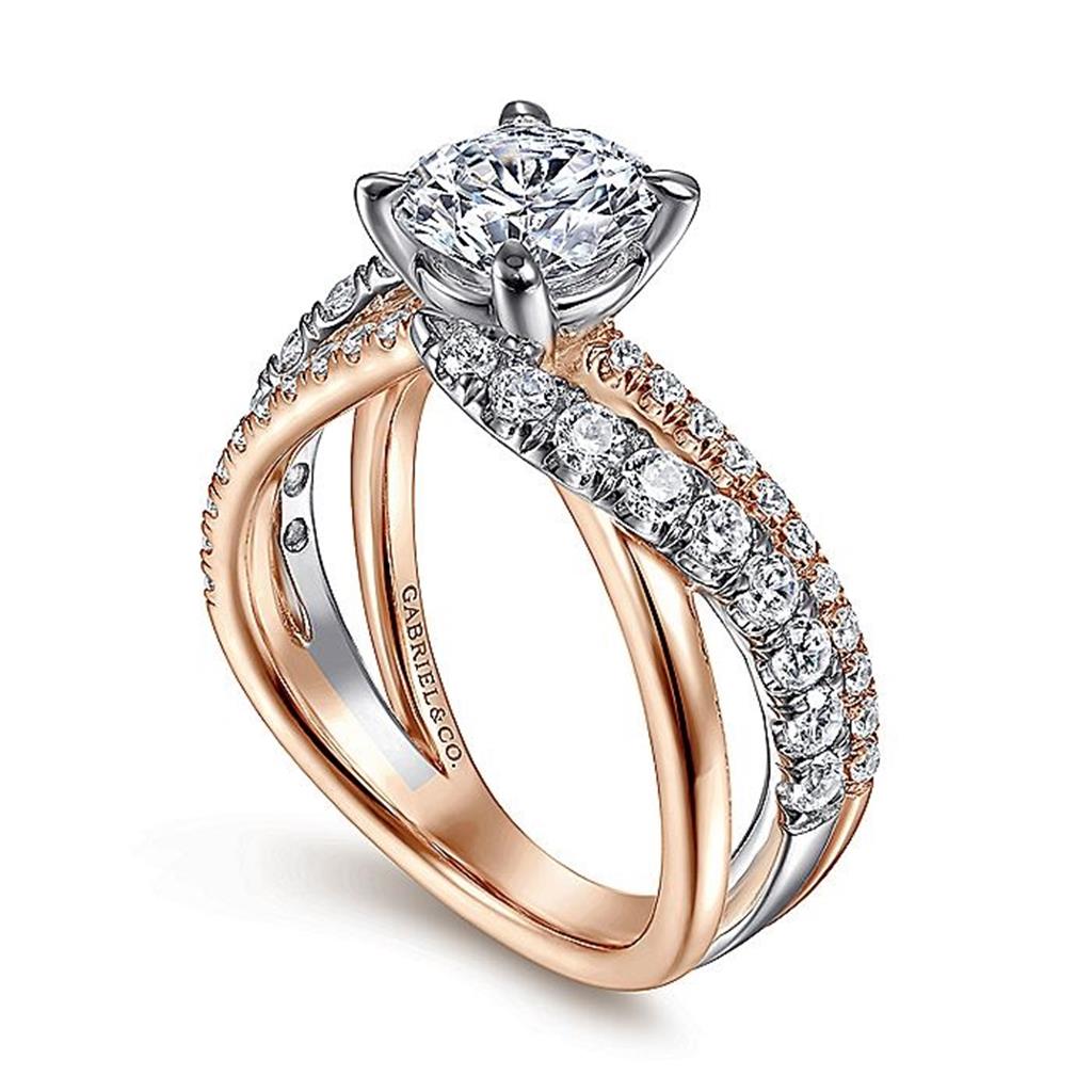 14K White And Rose 'Zaira' Free Form Round Natural Diamond Engagement Ring