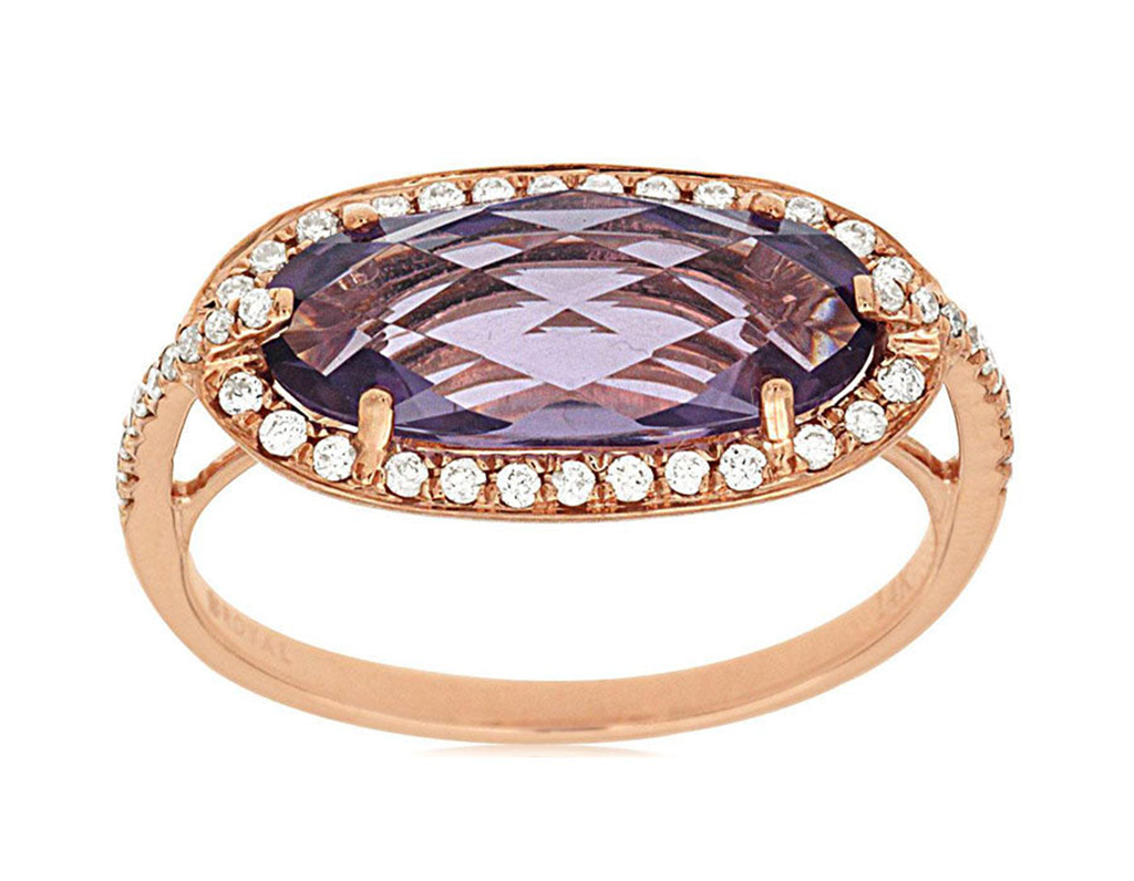 14K Rose Gold Oval Amethyst And Diamond Halo Ring