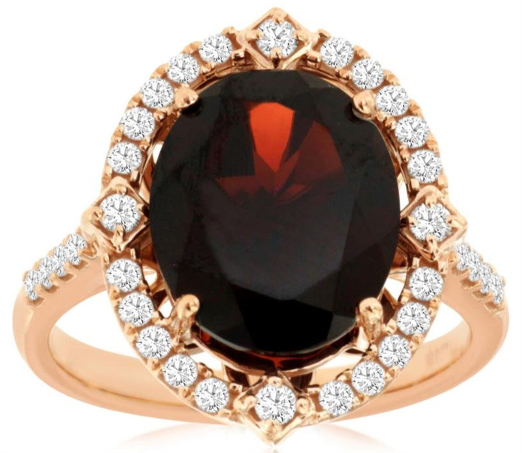14K Rose Gold Oval Garnet And Diamond Halo Ring