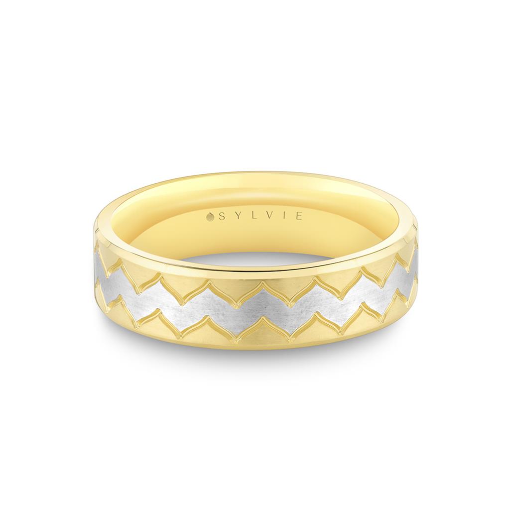 14K White And Yellow Gold Zig Zag Pattern Wedding Band