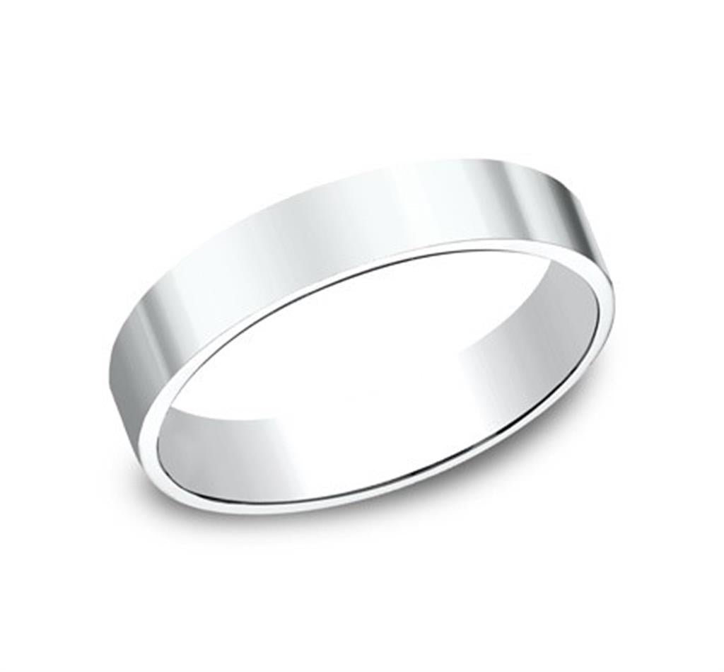 14K White Gold 4mm Flat Plain Straight Wedding Band