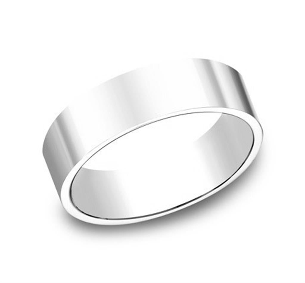 14K White Gold 6mm Flat Plain Straight Wedding Band