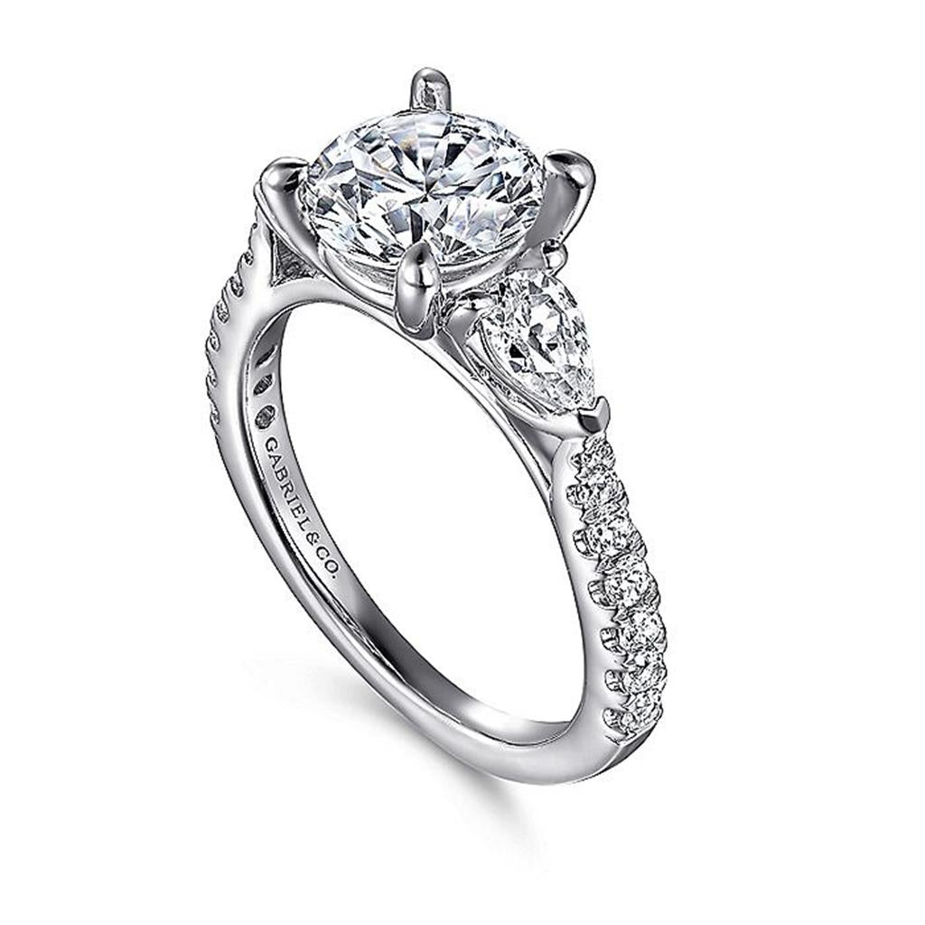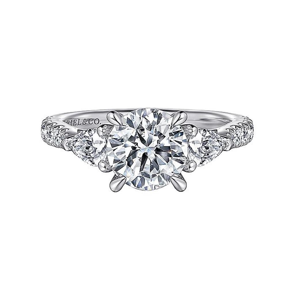 14K White Gold 'Abina' Three Stone Round Diamond Engagement Ring