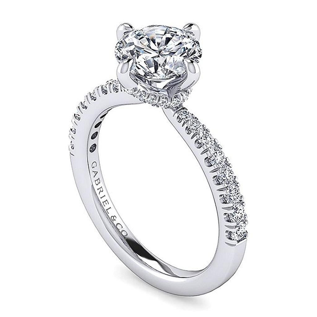 14K White Gold 'Ada' Hidden Halo Round Natural Diamonds Engagement Ring