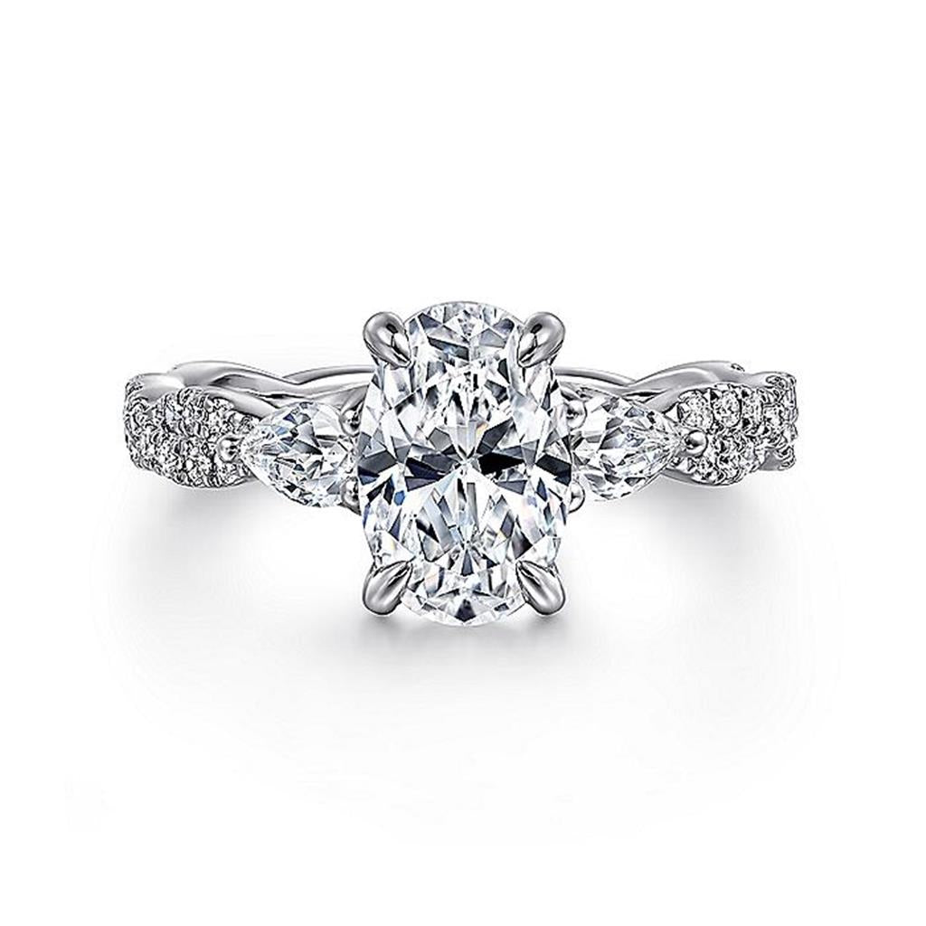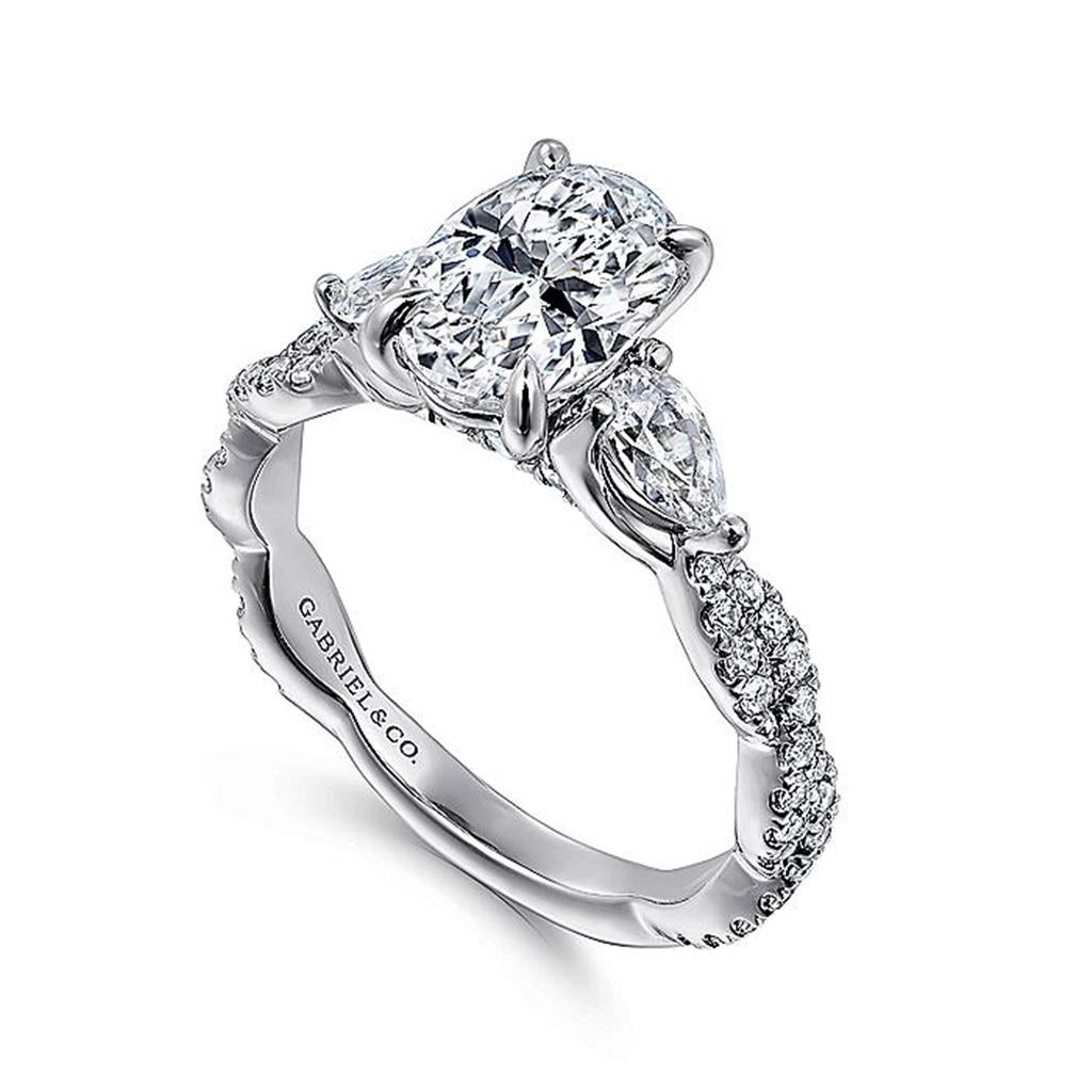 14K White Gold 'Alanna' Twisted Three Stone Oval Diamond Engagement Ring