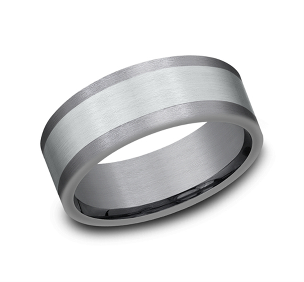 14K White Gold And Grey Tantalum 8mm Wedding Band