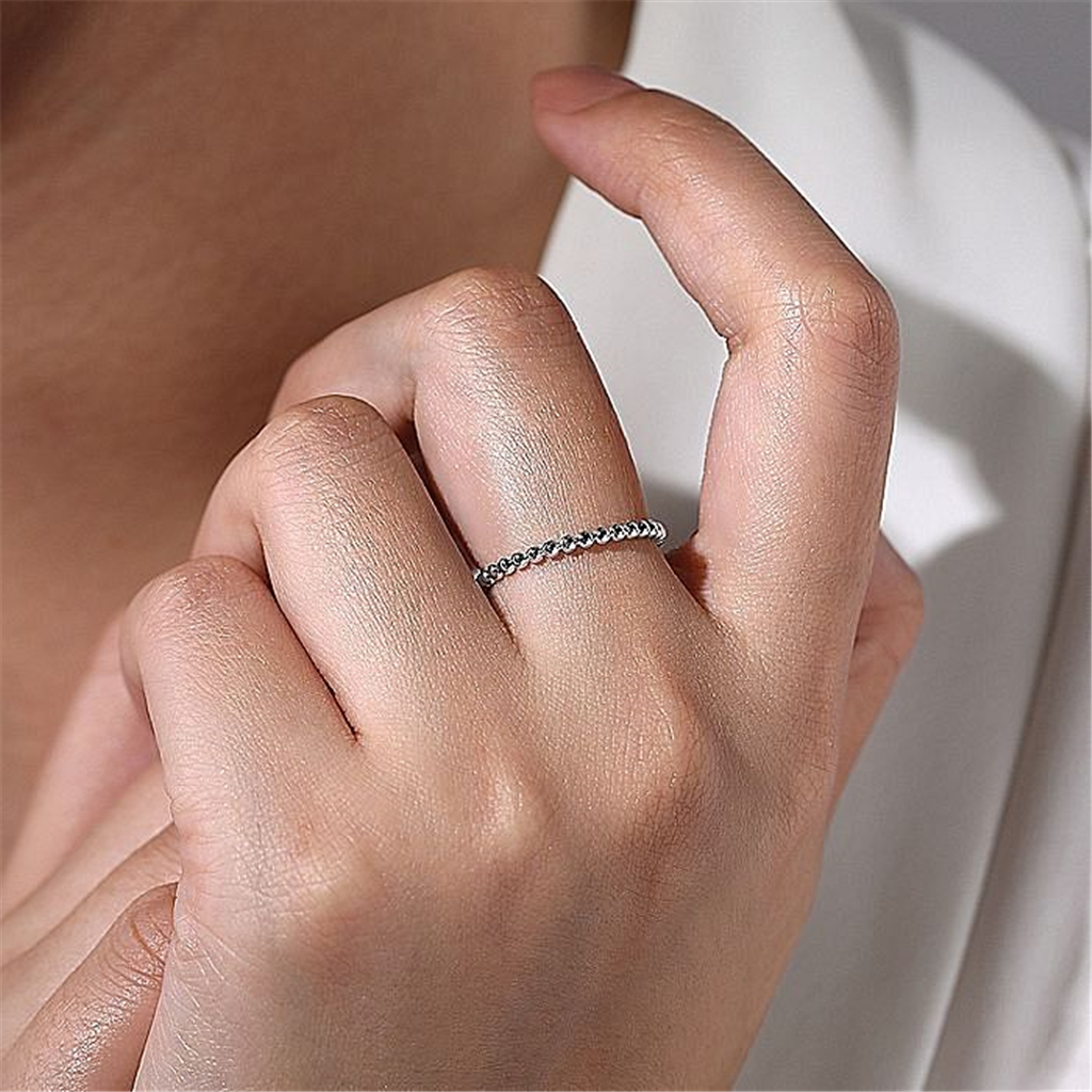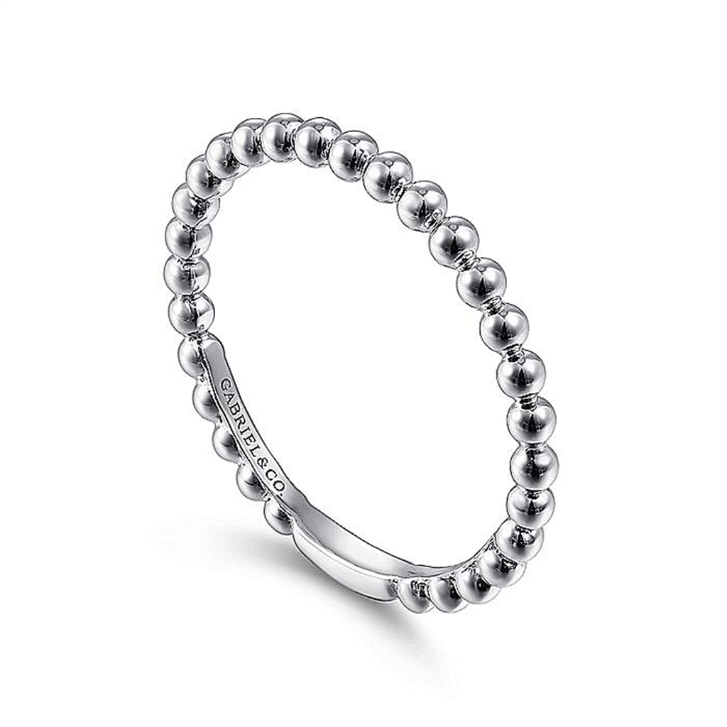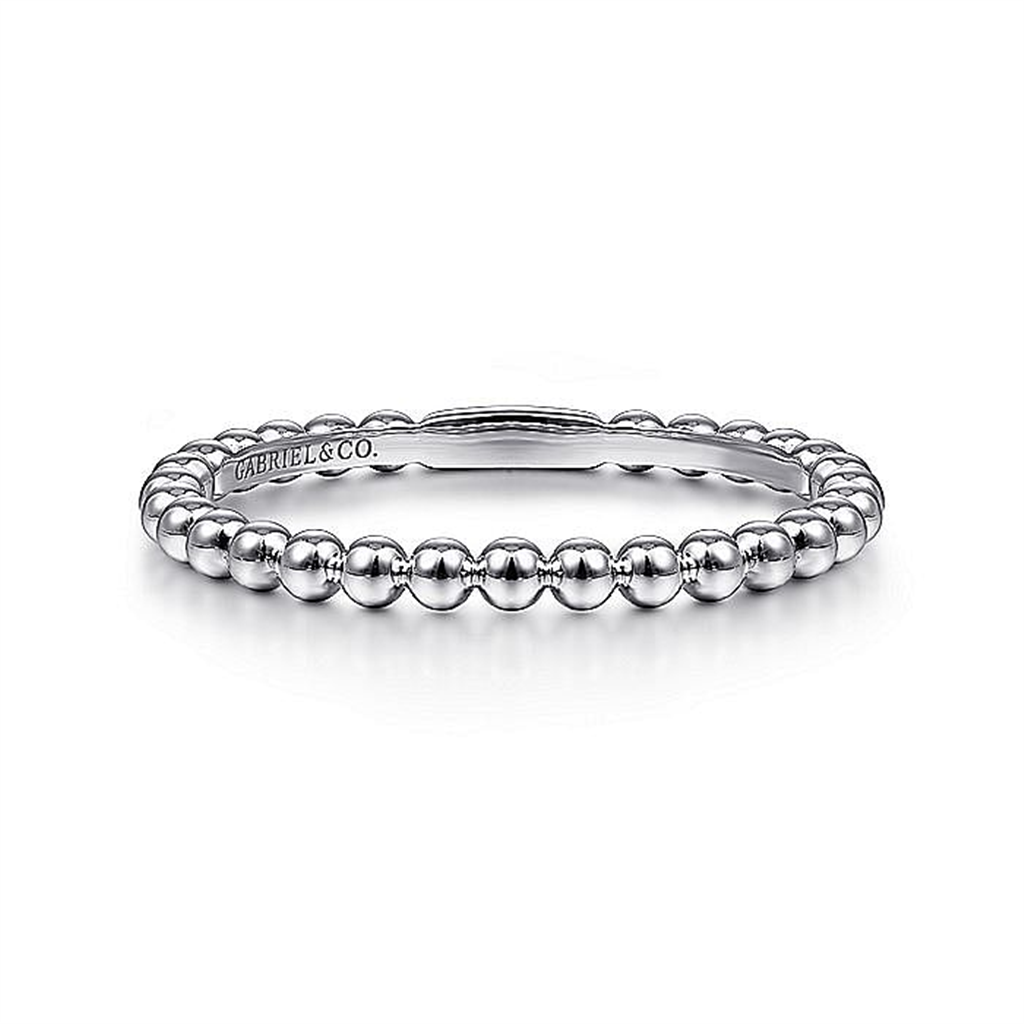Styled with a beaded design around the edge of the band, this polished 14K white gold stackable ring is the perfect addition to any wardrobe. This versatile staple piece shines next to any precious metal or gemstone of your choice.
