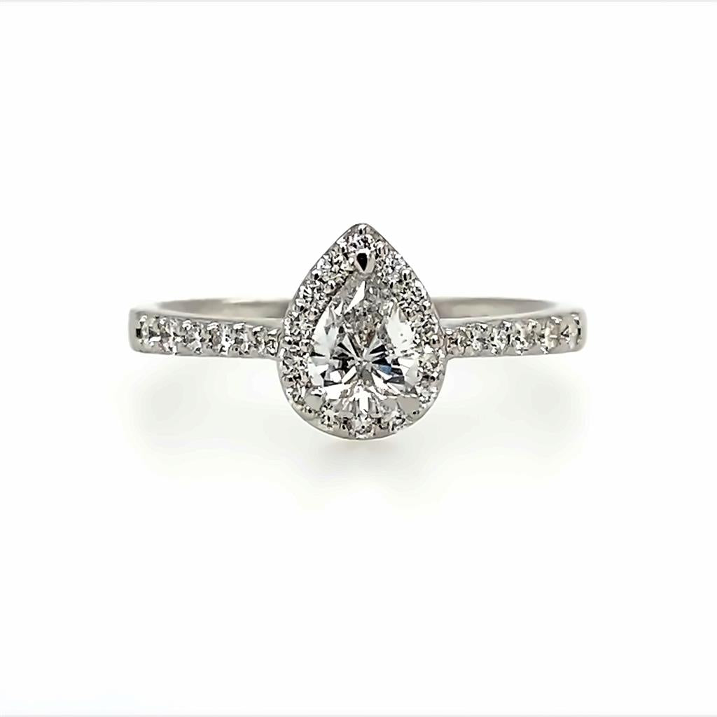 14K White Gold 0.41Ct Pear Diamond Halo Engagement Ring