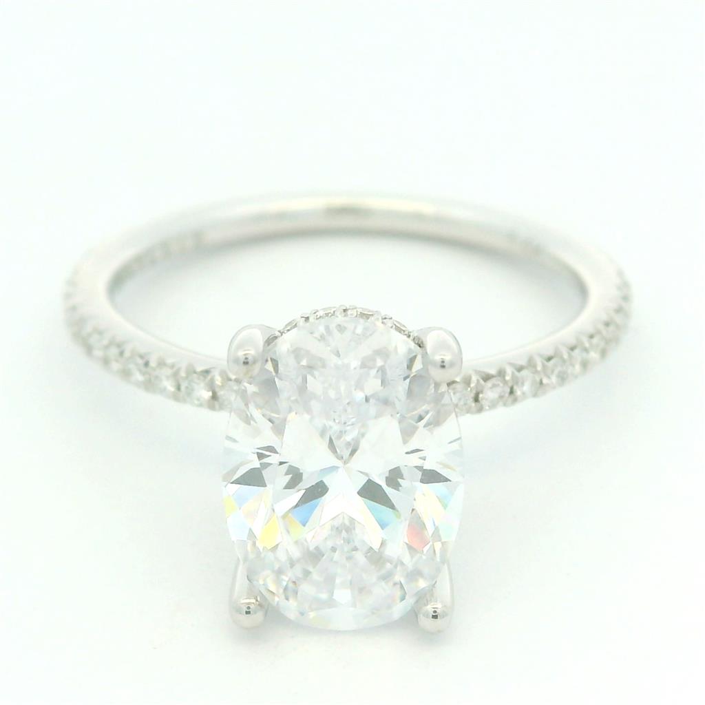 14K White Gold Classic Oval Natural Diamonds Engagement Ring