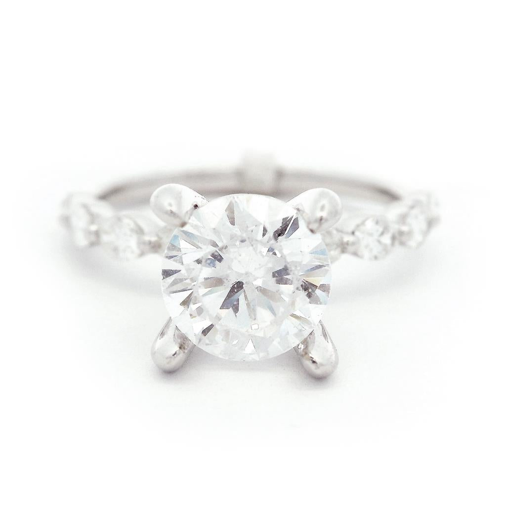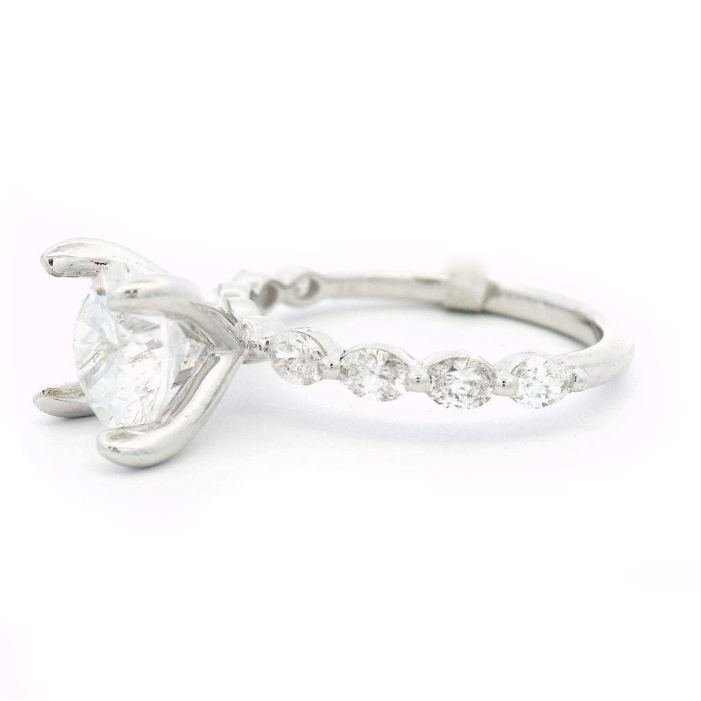 14K White Gold Classic Round Natural Diamonds Engagement Ring