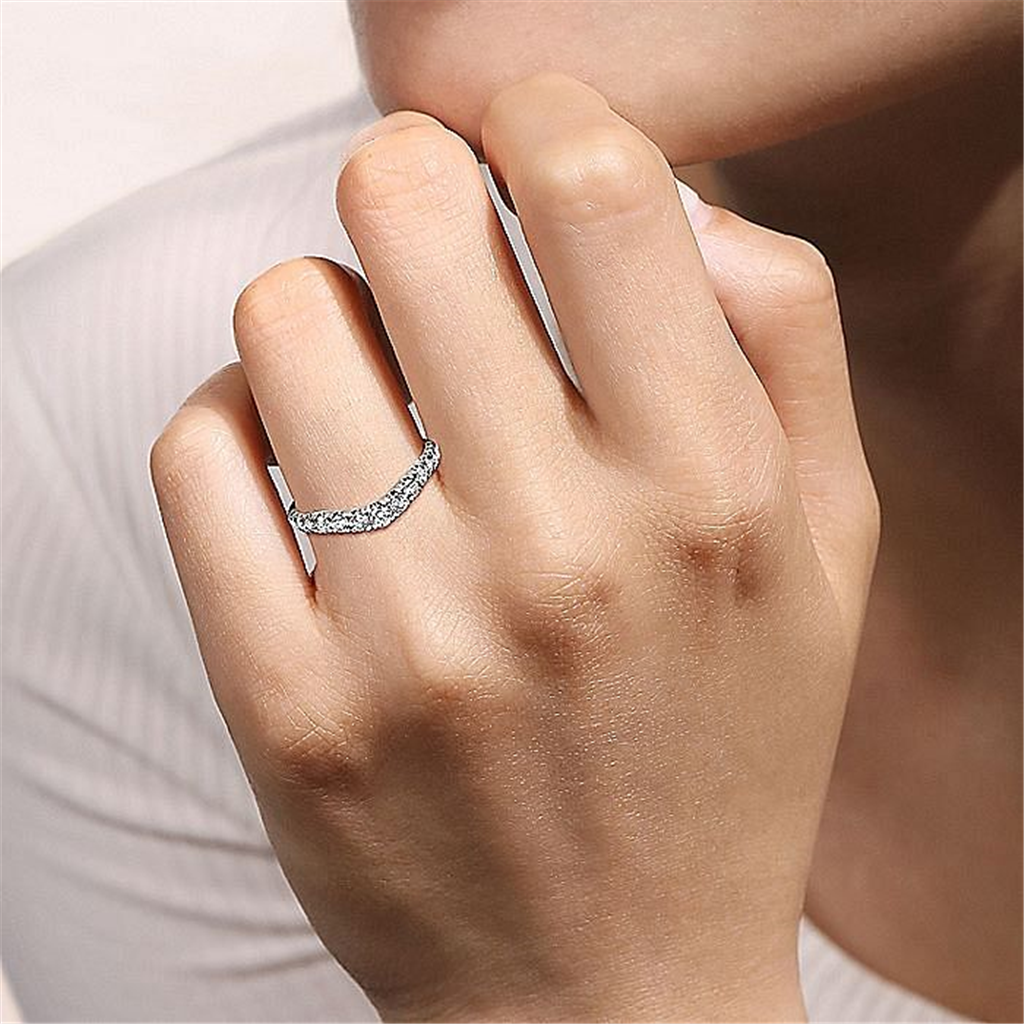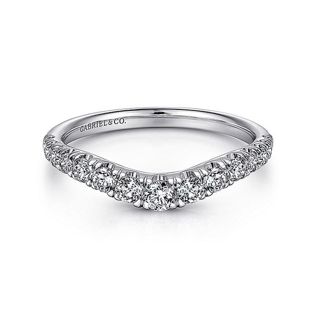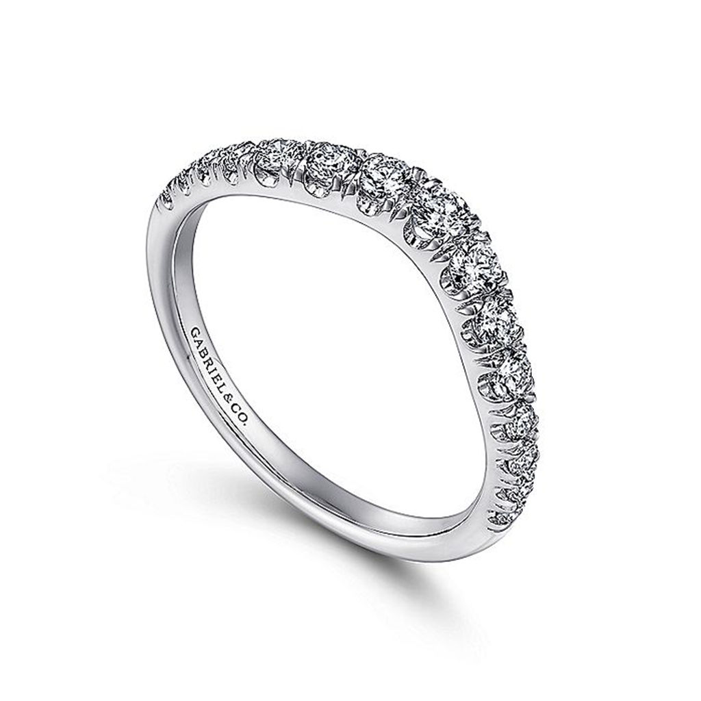 14K White Gold Curved French Pavé Set Diamond Wedding Band