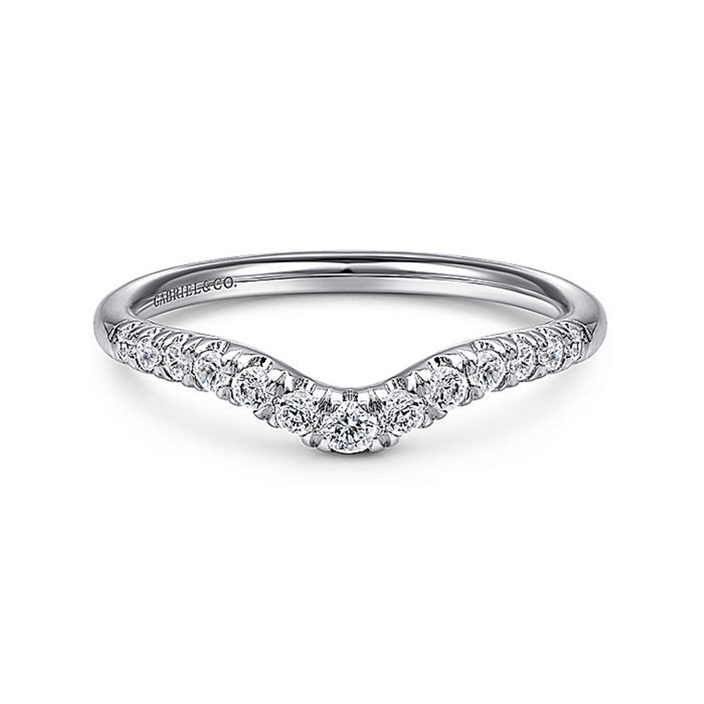 14K White Gold Curved French Pavé Set Diamond Wedding Band