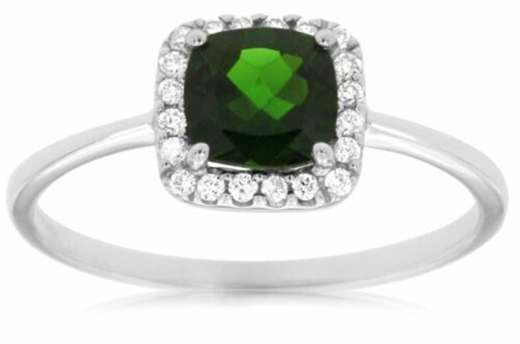 • Stones: (1) Cushion Russalite (20) Round Diamonds
