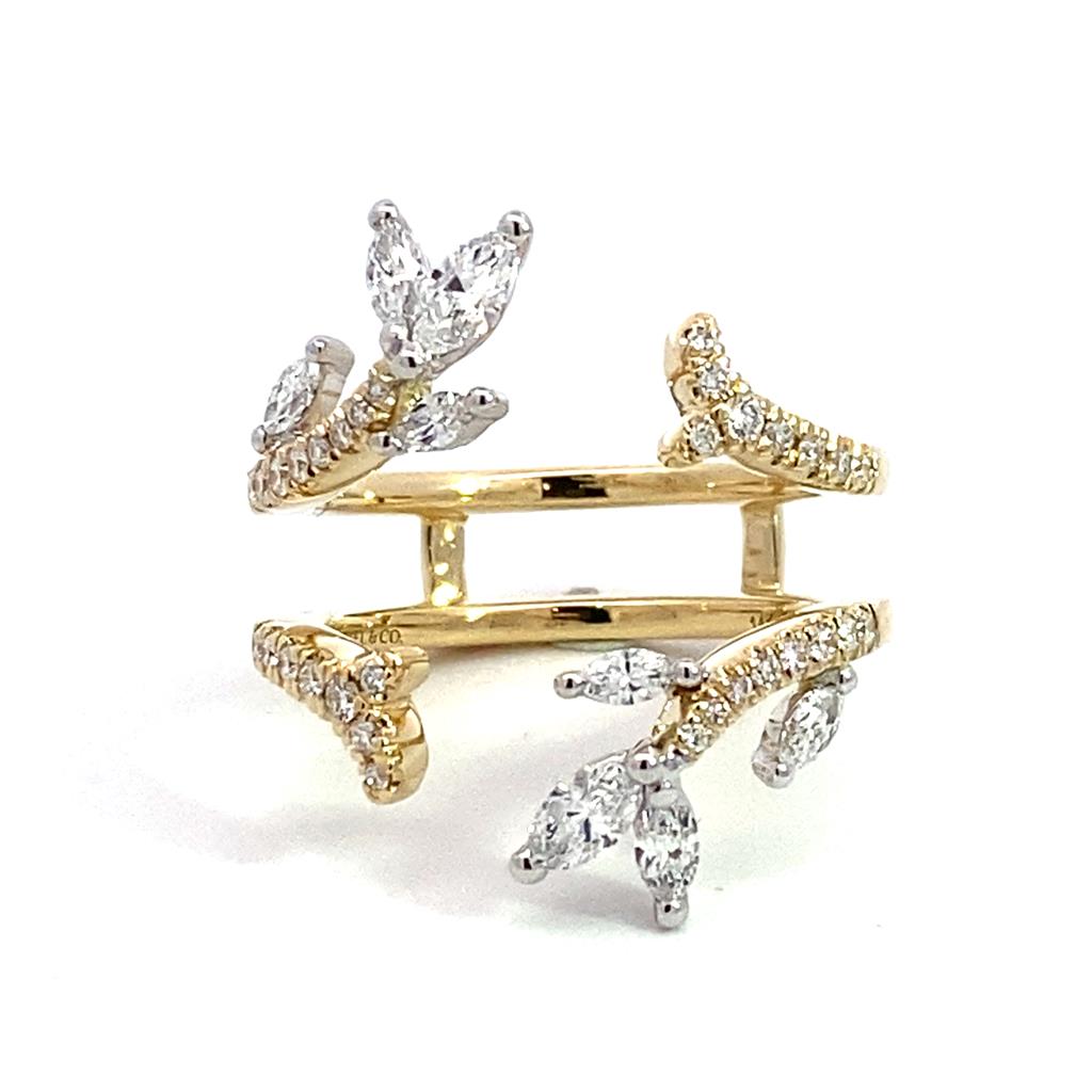 This floral-inspired ring jacket features French pave diamond encrusted branches with sparkling marquise diamond buds.