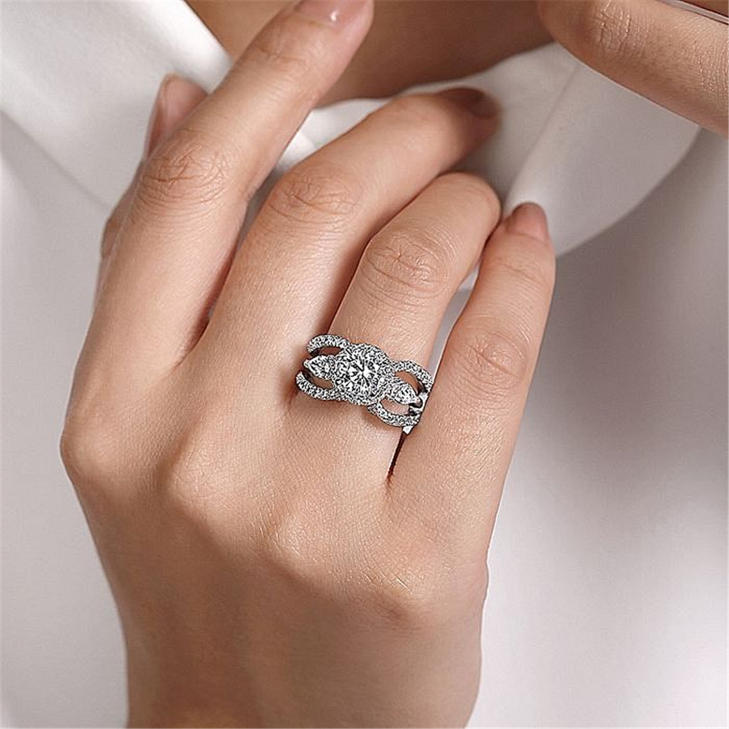 14K White Gold French Pavé Set Diamond Ring Enhancer
