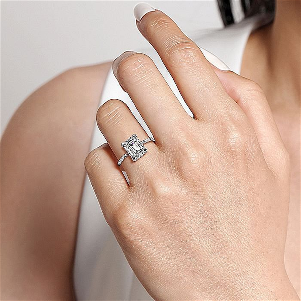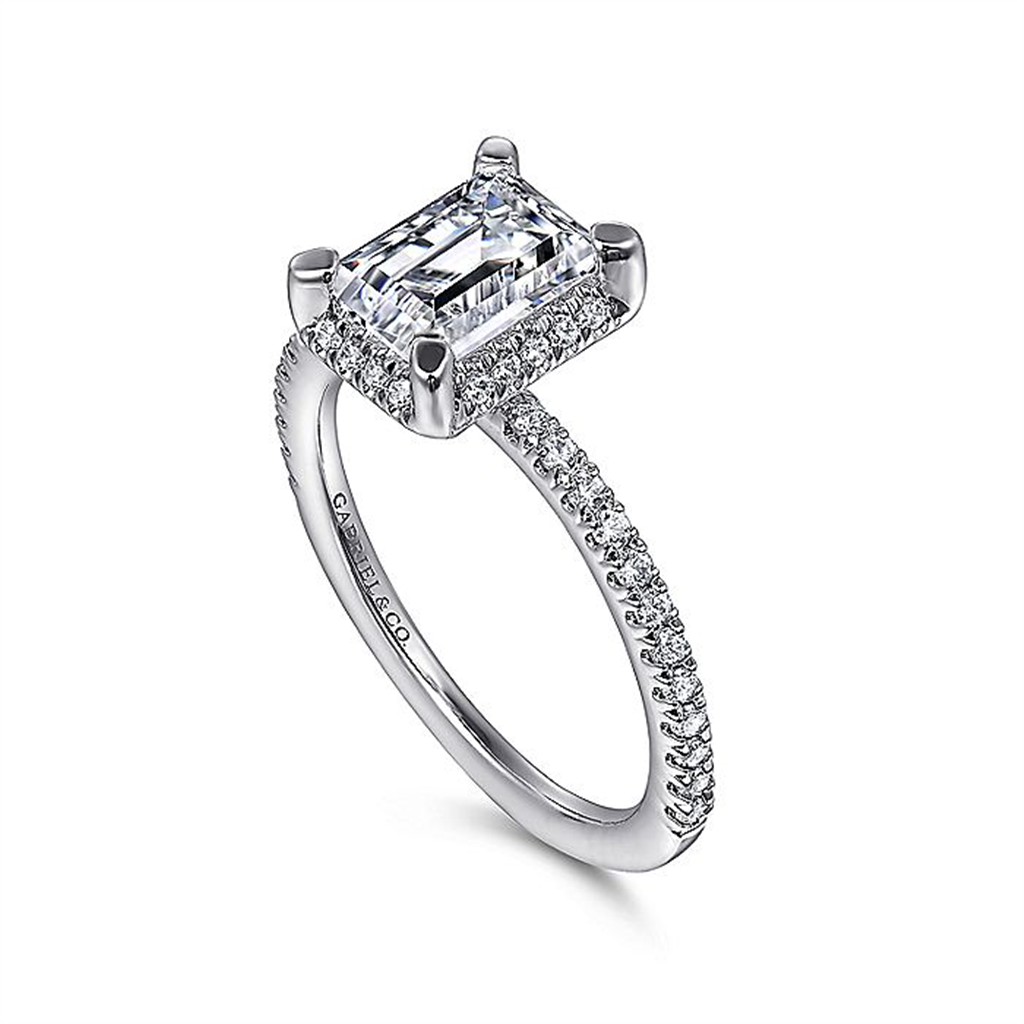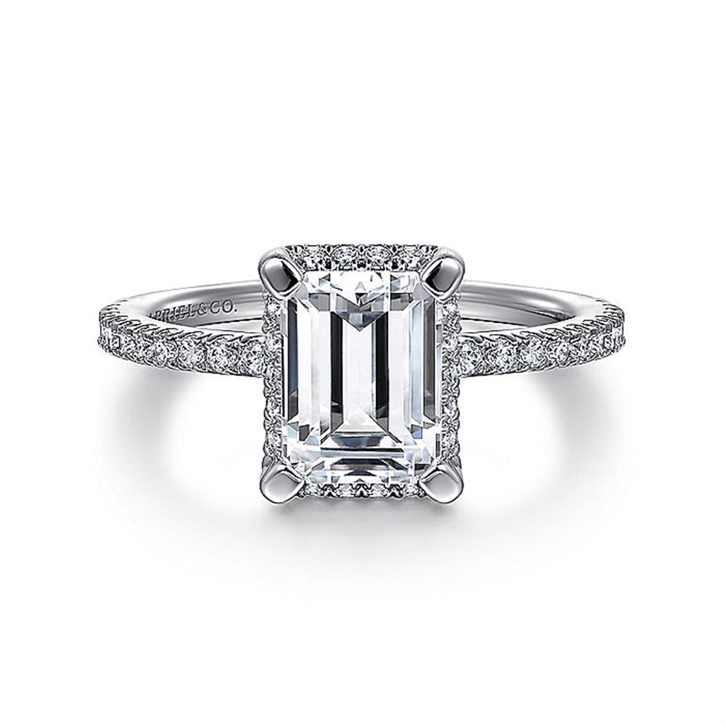 14K White Gold 'Hart' Hidden Halo Emerald Cut Diamond Engagement Ring