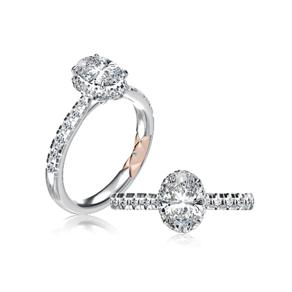 14K White Gold Hidden Halo Oval Natural Diamonds Engagement Ring