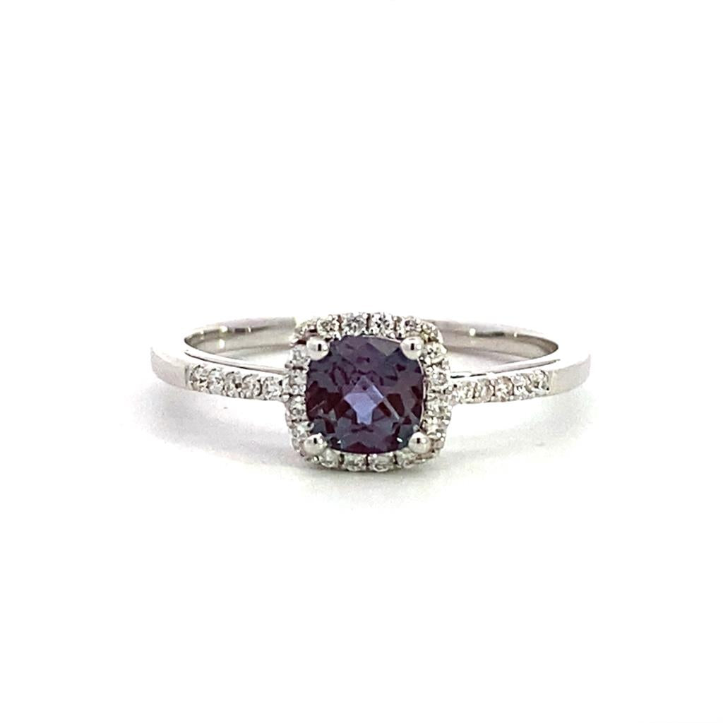 14K White Gold Lab Grown Alexandrite And Diamond Halo Ring