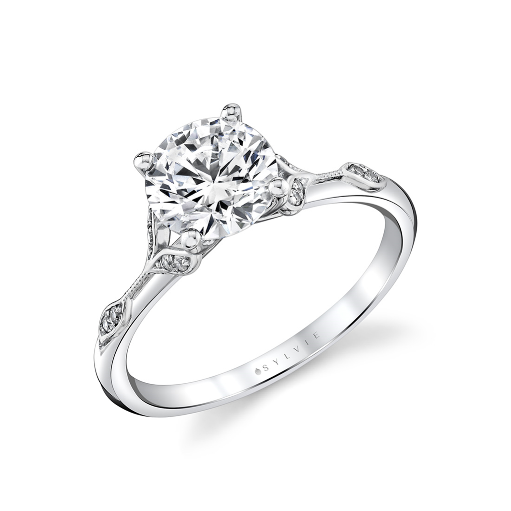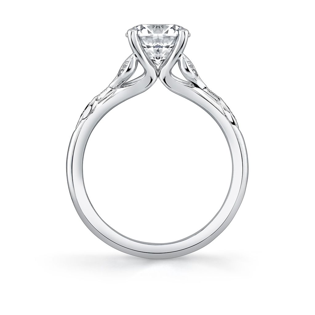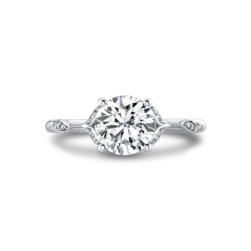 14K White Gold 'Lotus' Split Shank Round Diamond Engagement Ring