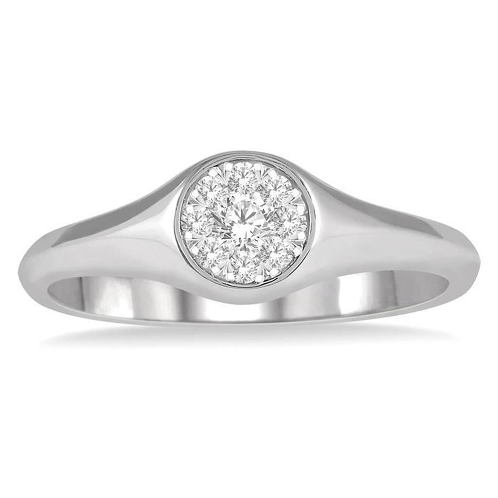 14K White Gold 'Lovebright' Round Shape Diamond Signet Ring