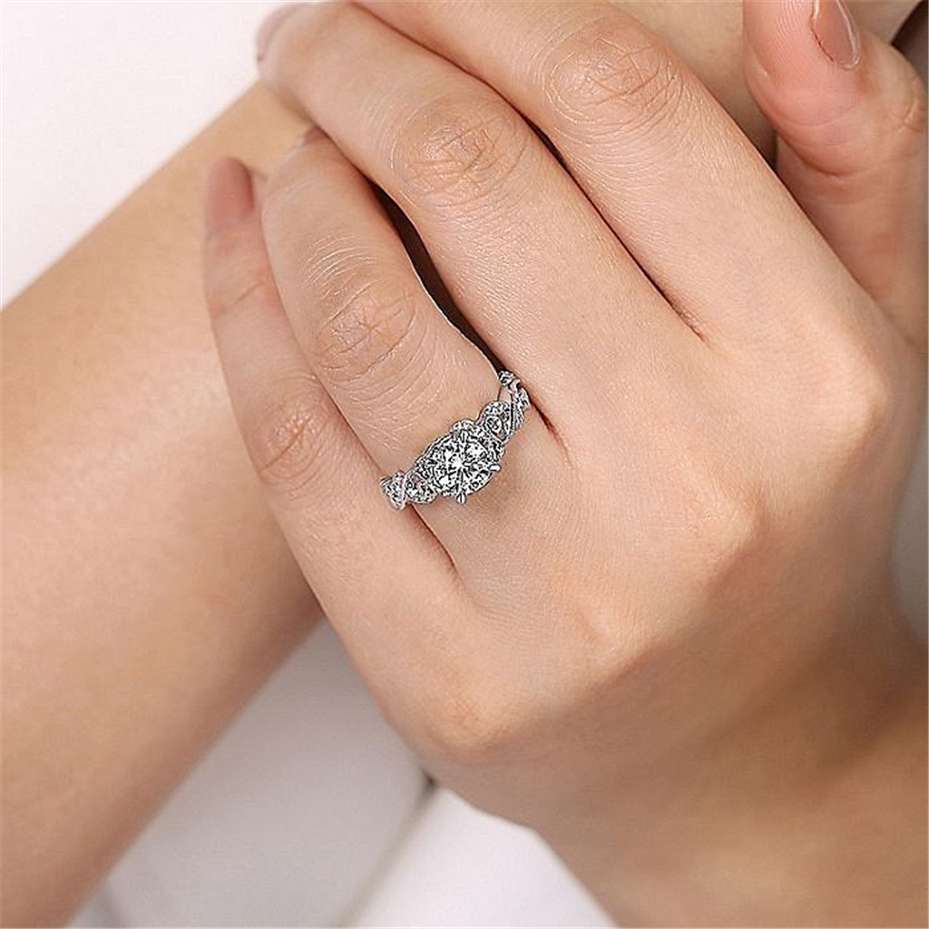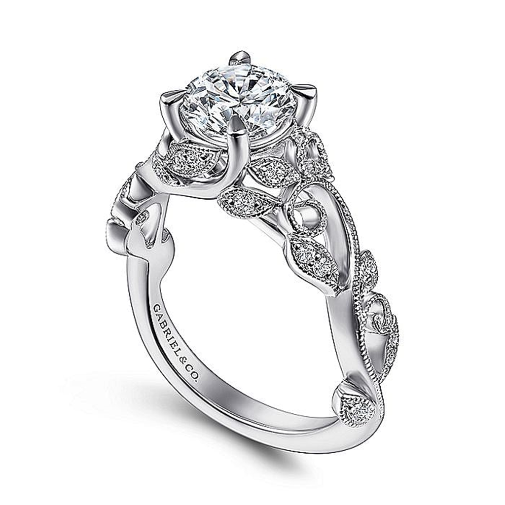 14K White Gold 'Martedi' Free Form Round Natural Diamonds Engagement Ring