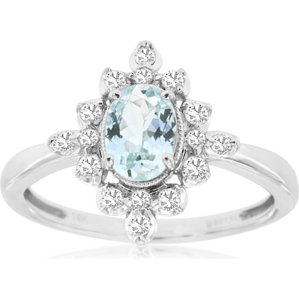 • Total Carat Weight: Aquamarine 0.68 Ctw, Diamonds 0.25 Ctw