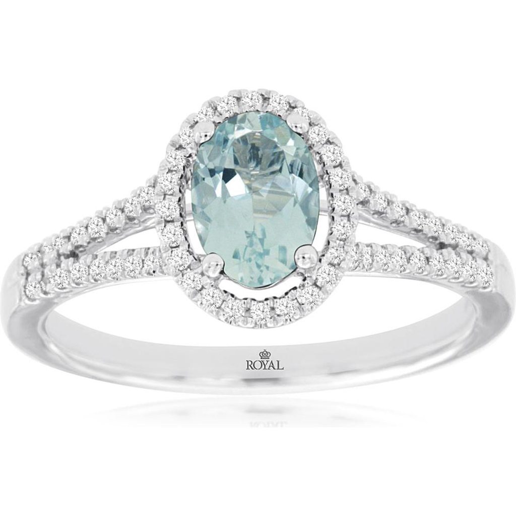 14K White Gold Oval Aquamarine And Diamond Halo Ring