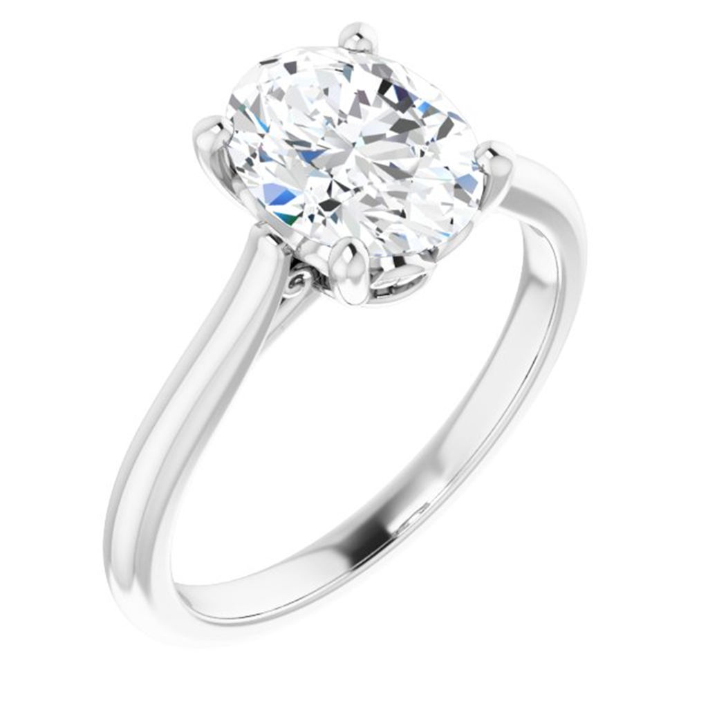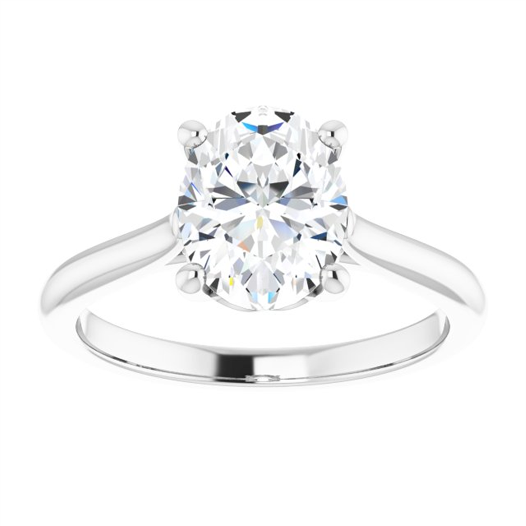 14K White Gold Oval Center Solitaire Engagement Ring