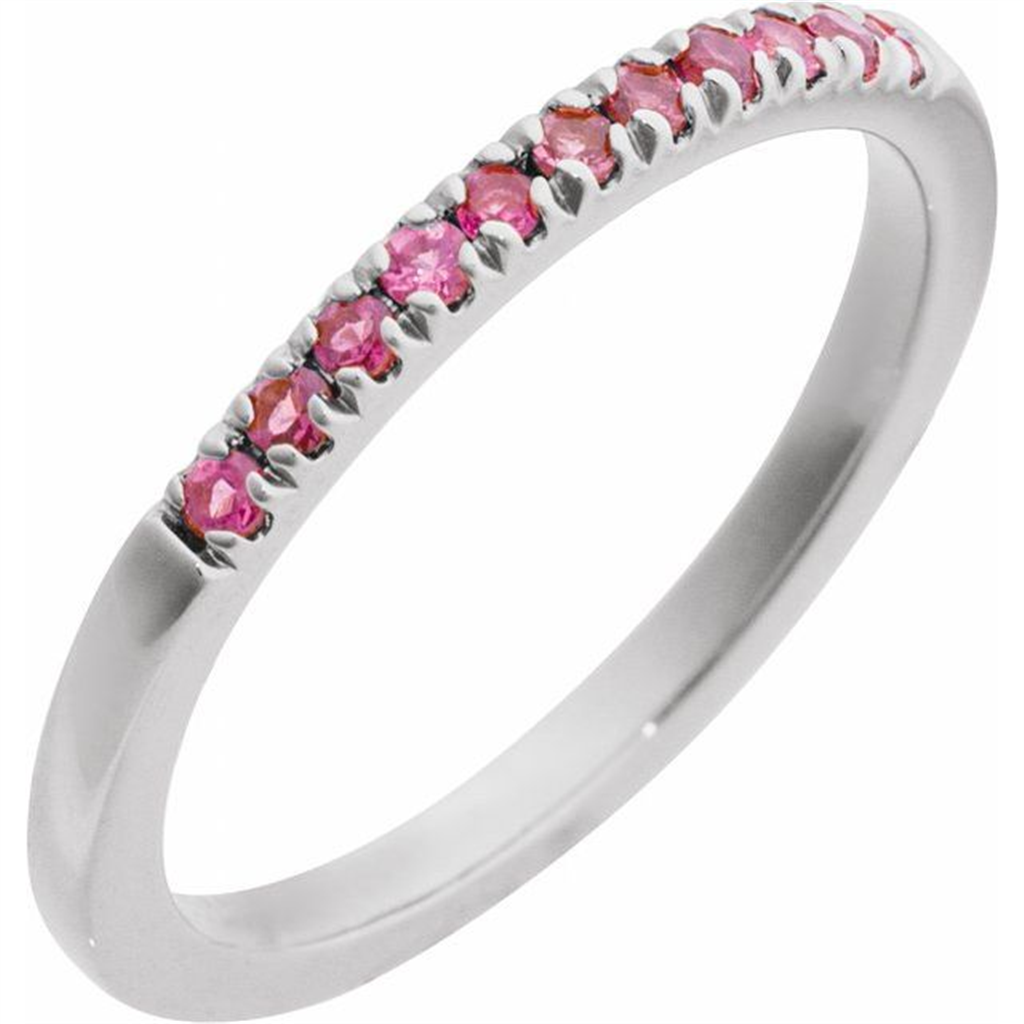 14K White Gold October Birthstone Round Pink Tourmalines Band Ring