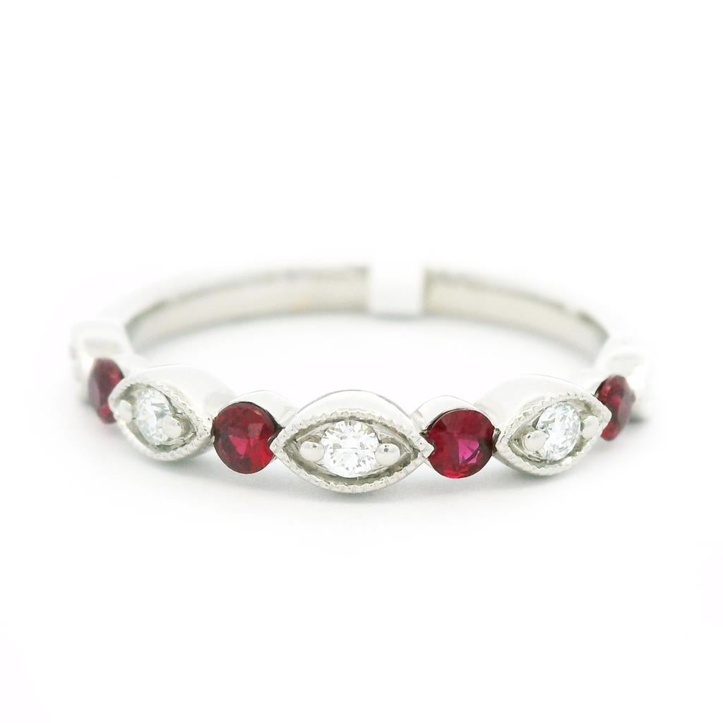 14K White Gold Round Rubies Band Ring