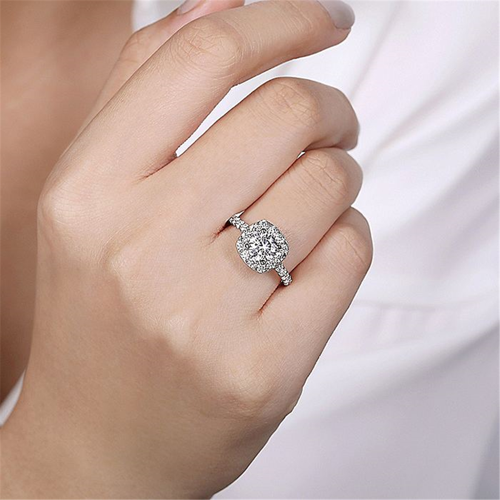 14K White Gold 'Skylar' Halo Cushion Diamond Engagement Ring