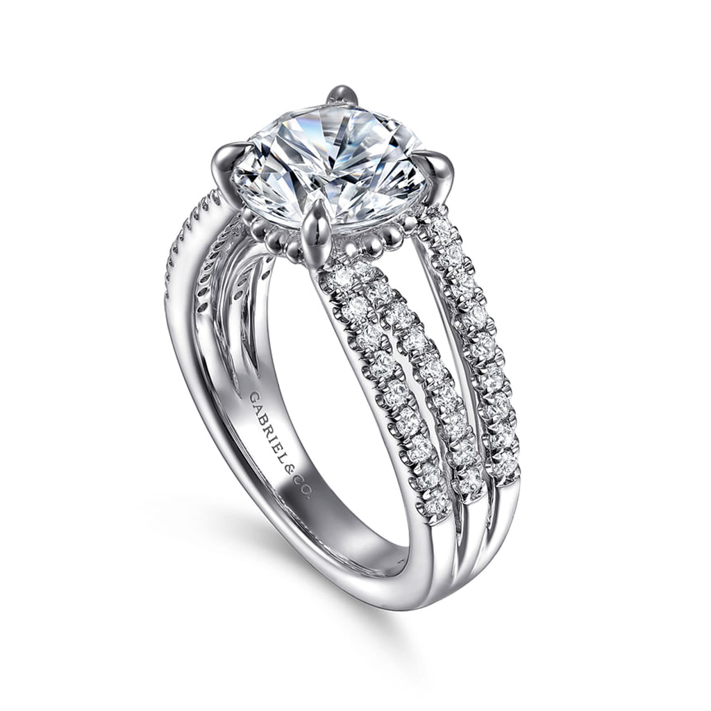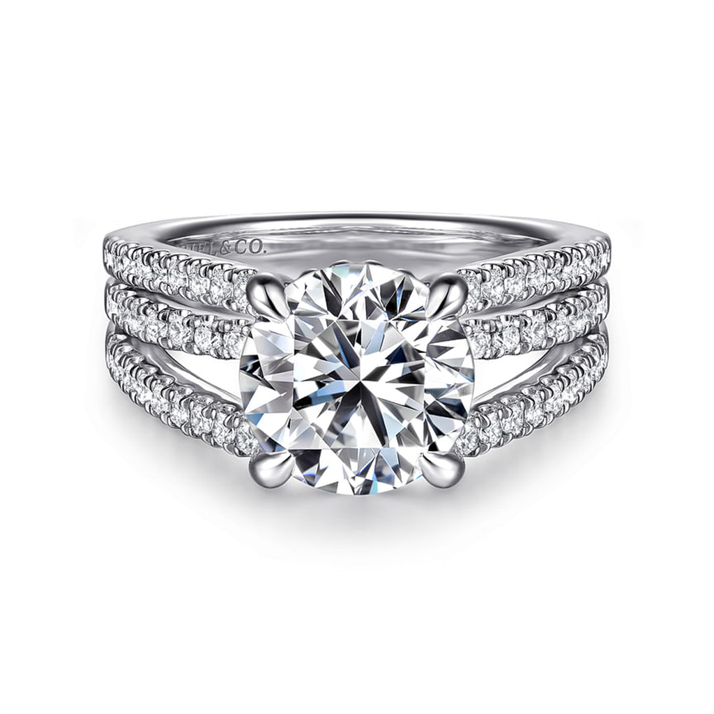 14K White Gold 'Rivah' Split Shank Round Natural Diamonds Engagement Ring