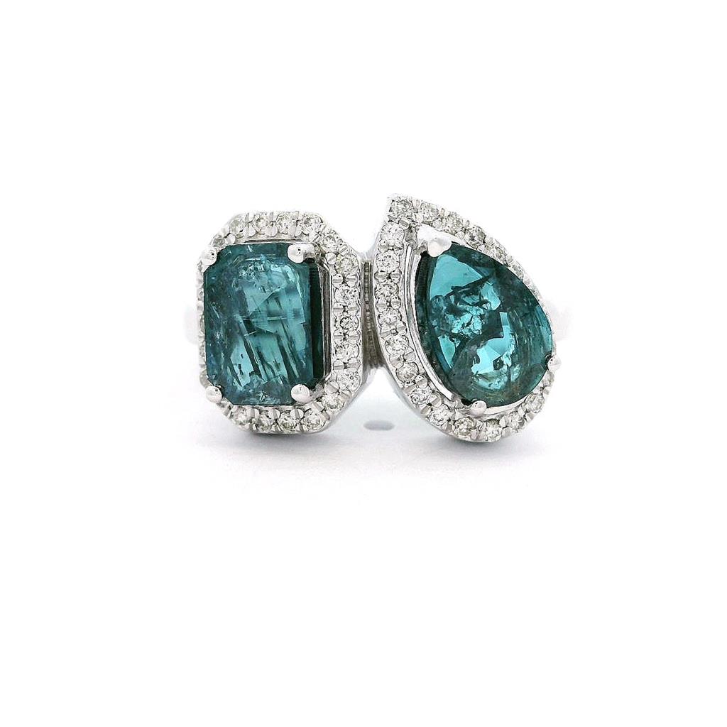 • Stones: (1) Natural Irradiated Blue Pear Diamond (1) Natural Irradiated Blue Emerald Cut Diamond (44) Round Diamonds