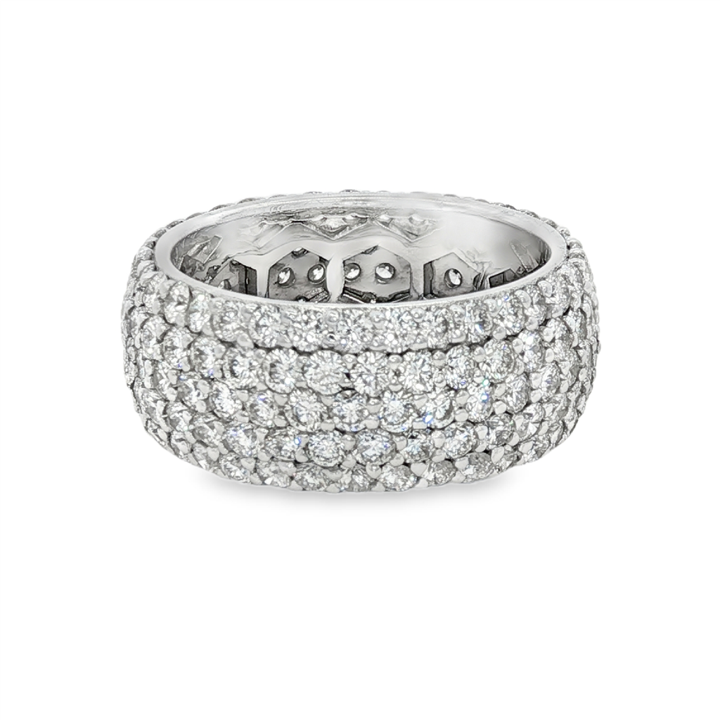 14K White Gold Wide Band Natural Diamonds Ring