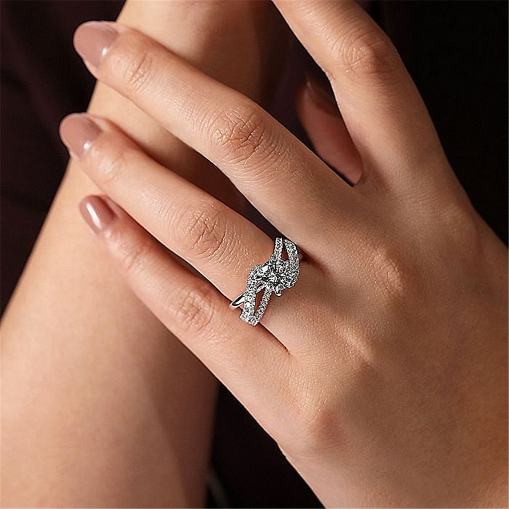 14K White Gold 'Zaira' Twist Round Diamond Engagement Ring