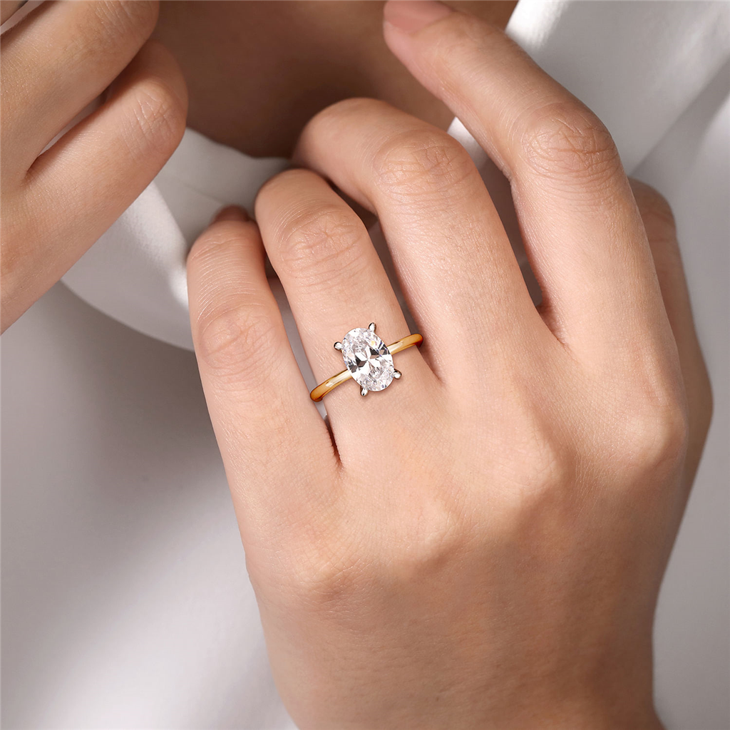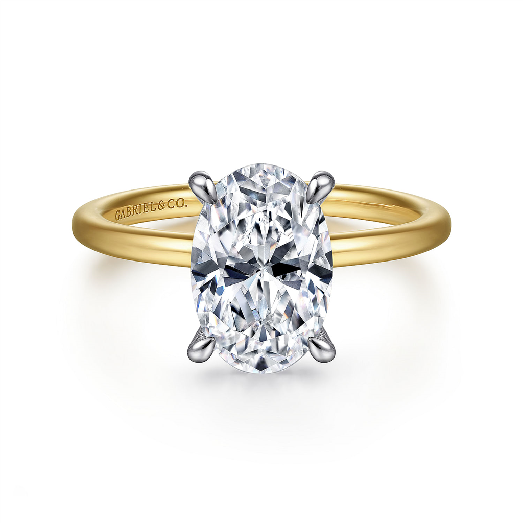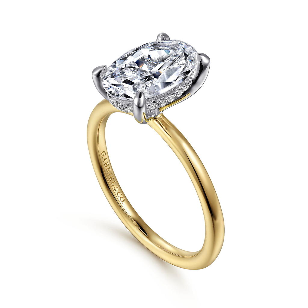 14K Yellow And White Gold 'Cari' Hidden Halo Oval Natural Diamonds Engagement Ring