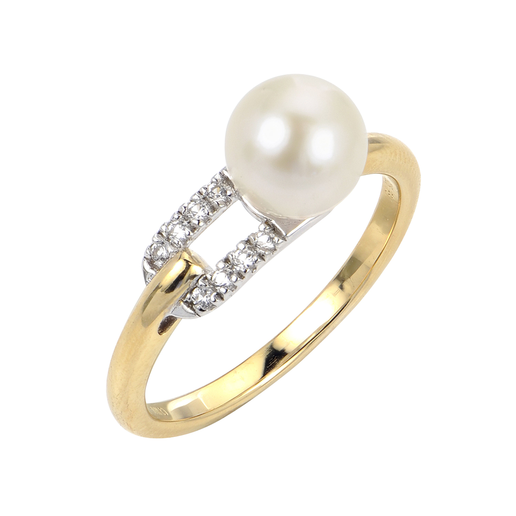 14K Yellow And White Gold Pearl And Diamond Fashion Ring
