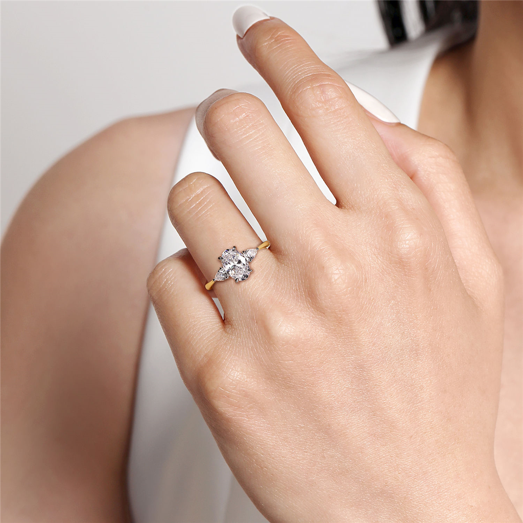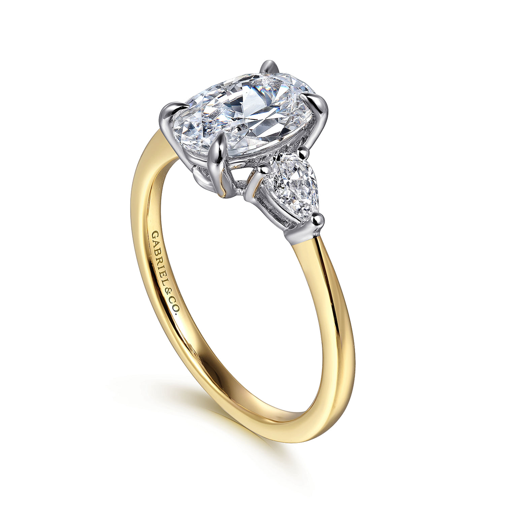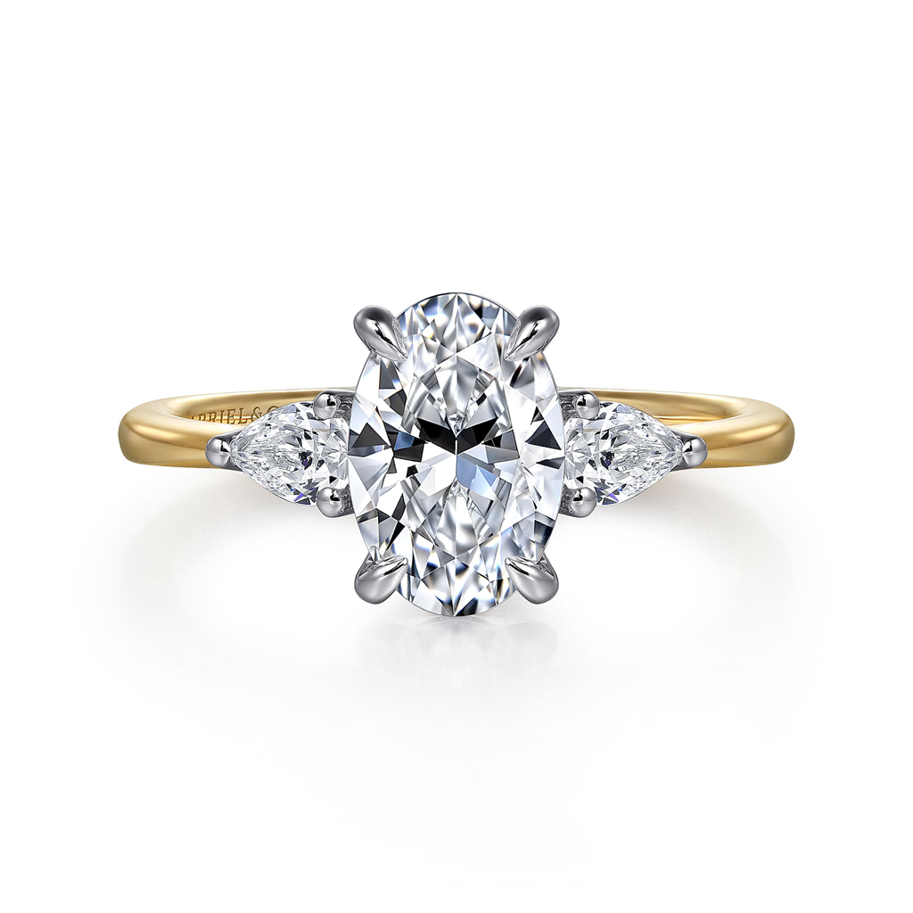 14K Two-Tone 'Sima' Three Stone Oval Natural Diamonds Engagement Ring