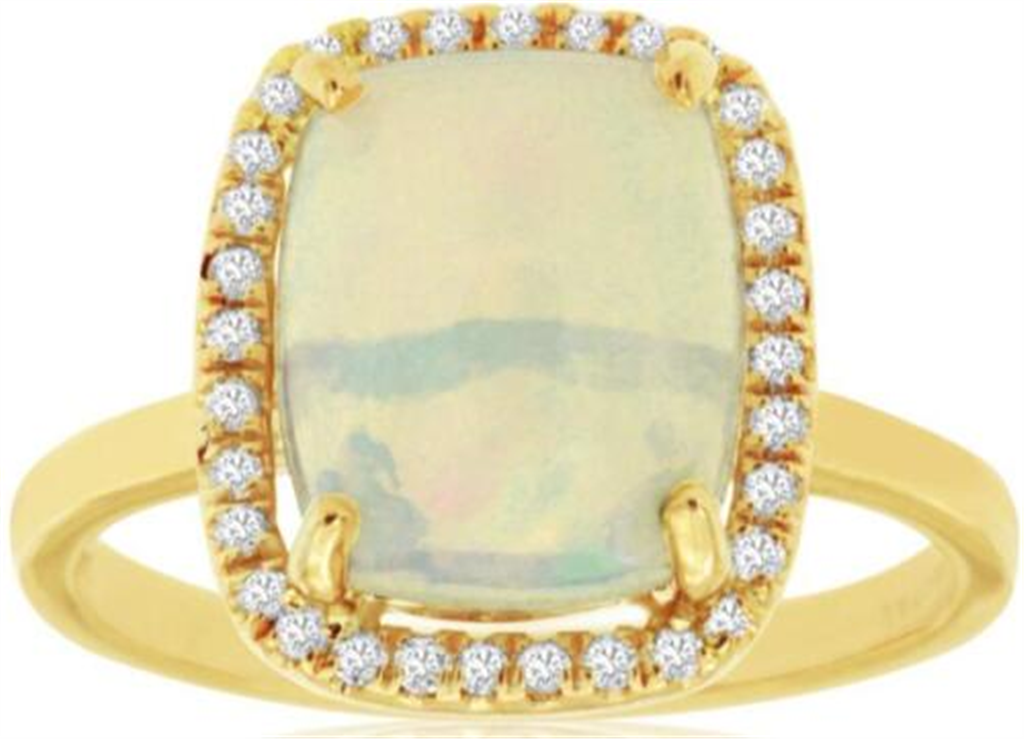 14K Yellow Gold Cabochon Opal And Diamond Halo Ring