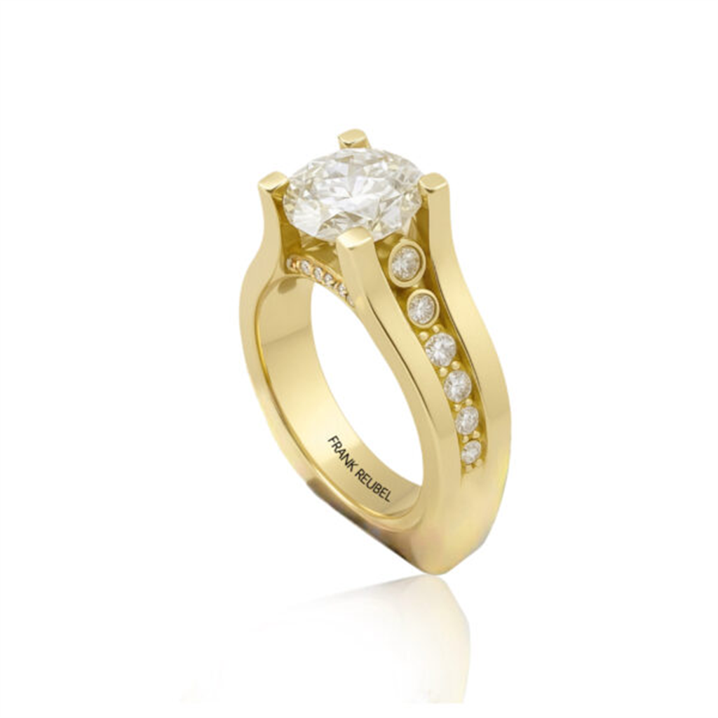 14K Yellow Gold Contemporary Round Diamond Engagement Ring
