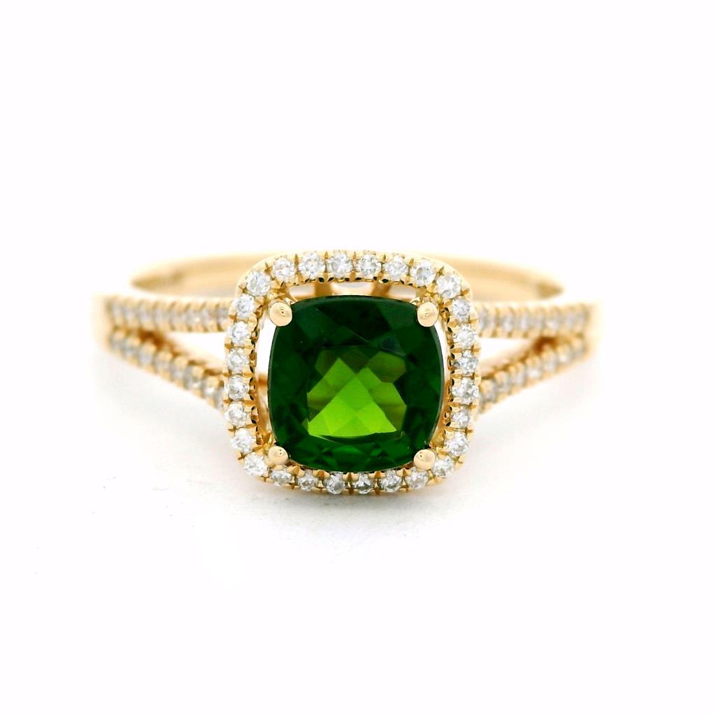 14K Yellow Gold Cushion Russalite And Diamond Halo Ring
