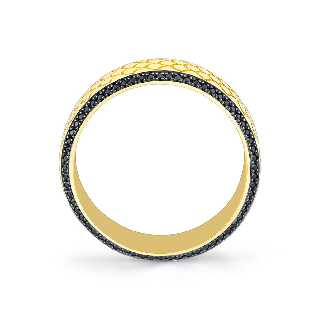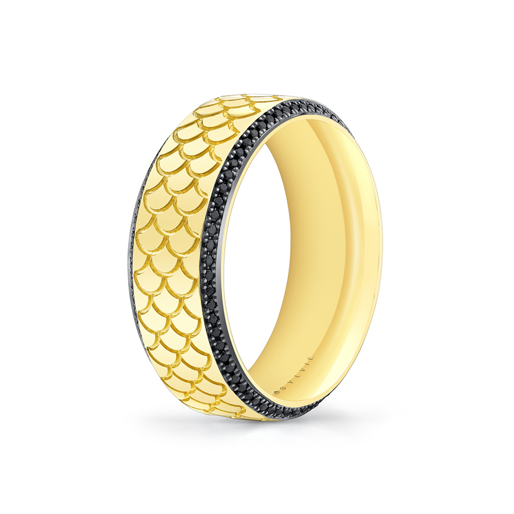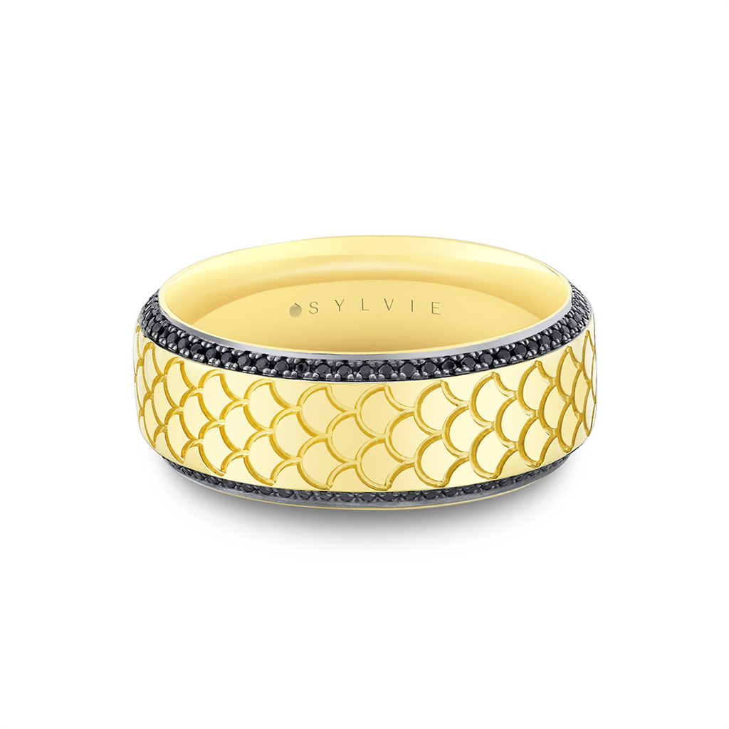 14K Yellow Gold 'Damian' Engraved Black Diamond Straight 8mm Wedding Band