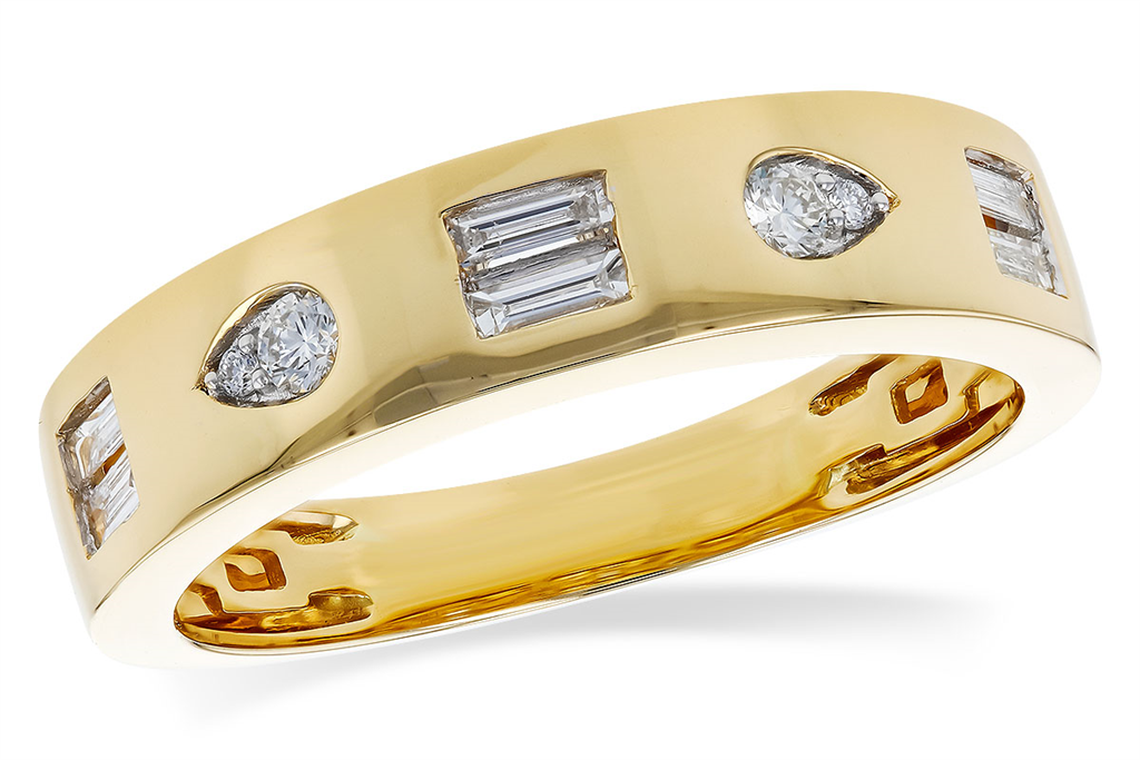 14K Yellow Gold Flush Set Contemporary Diamond Ring