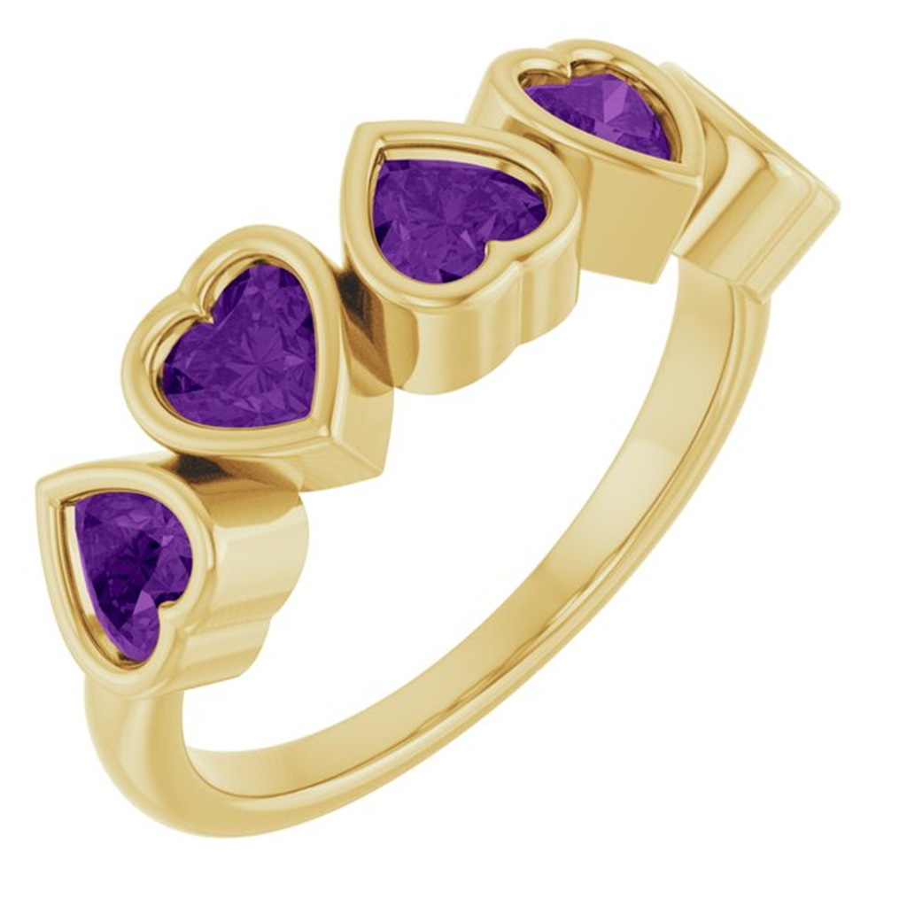 14K Yellow Gold Heart Amethysts Stackable Ring