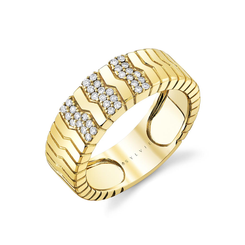 14K Yellow Gold 'Linéaire' Fine Line Diamond Ring