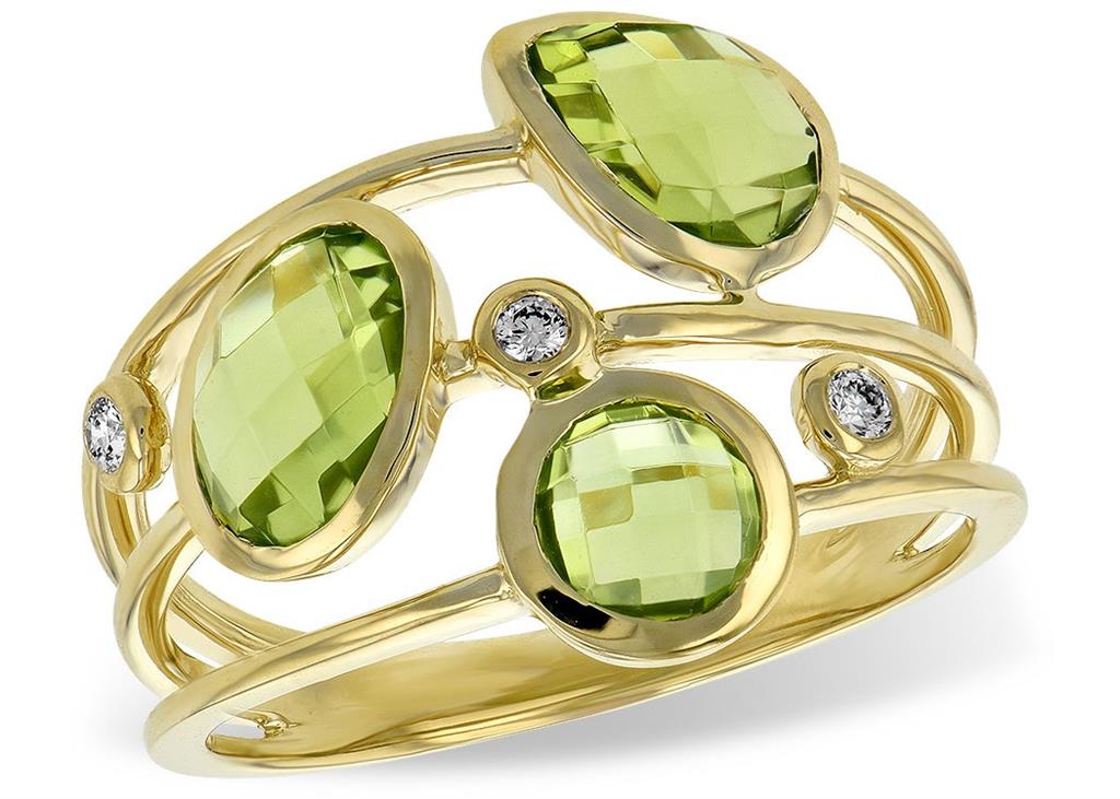 14K Yellow Gold Multi-Row Peridot And Diamond Fashion Ring
