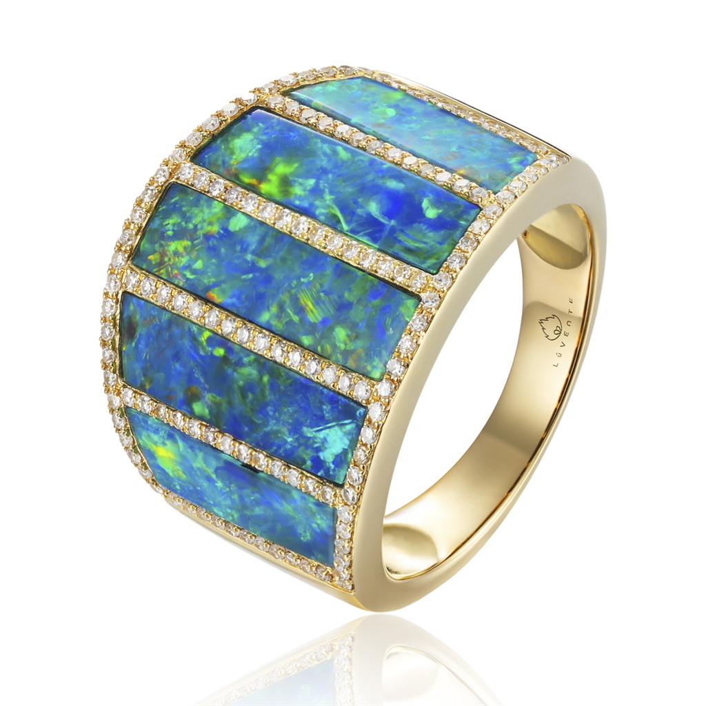 14K Yellow Gold Opal Inlaid Wide Ring