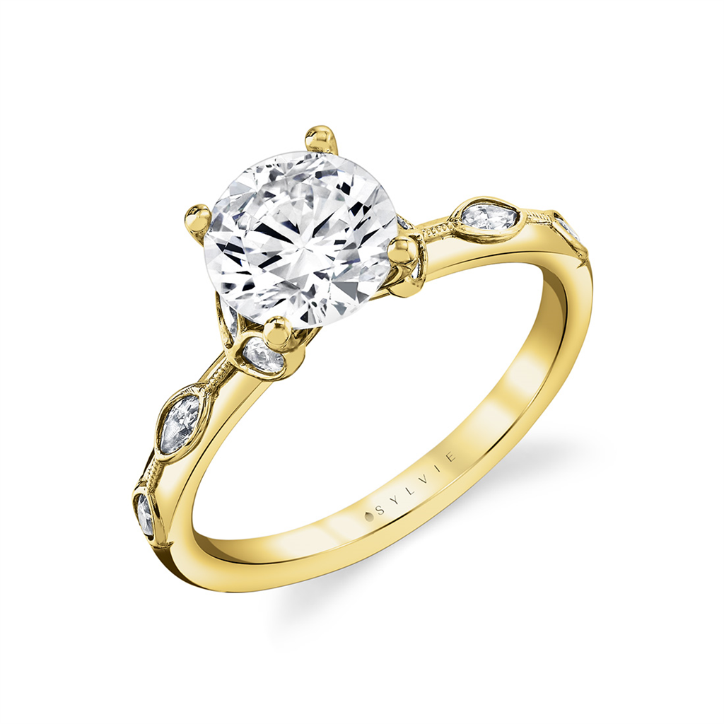 14K Yellow Gold 'Opal' Split Shank Round Diamond Engagement Ring