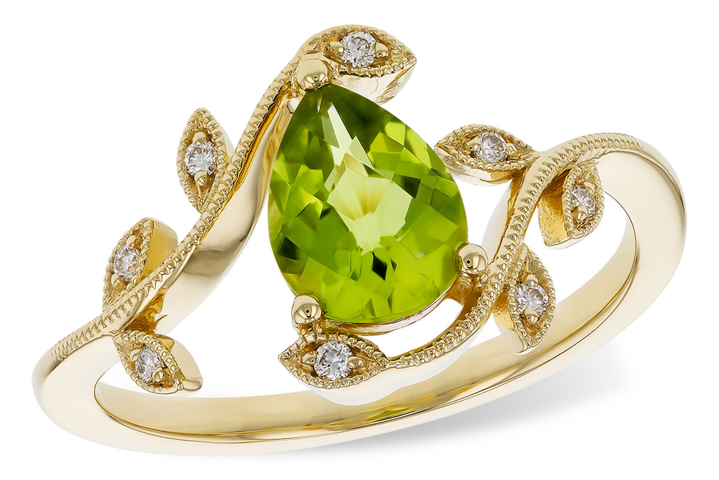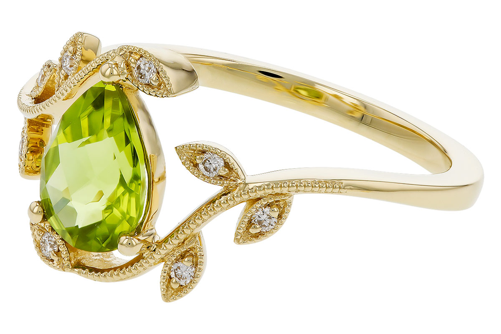 • Stones: (1) Pear Peridot (8) Round Diamonds